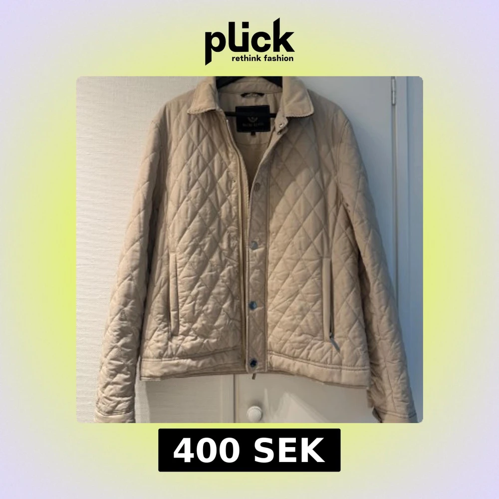Snygg beige quiltad jacka från Henri Lloyd med klassisk krage och dragkedja framtill. Jackan har fickor med tryckknappar och ett broderat märke på bröstet. Perfekt för övergångssäsonger och stilren look.