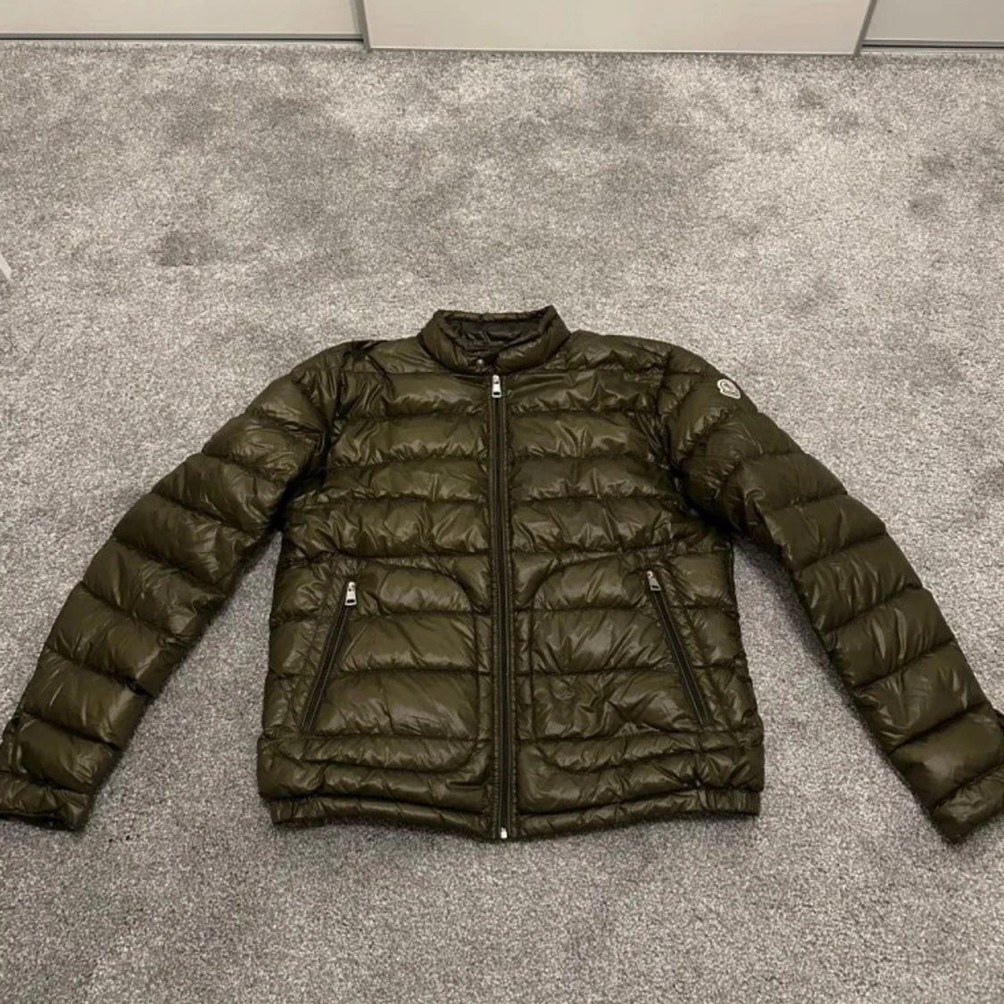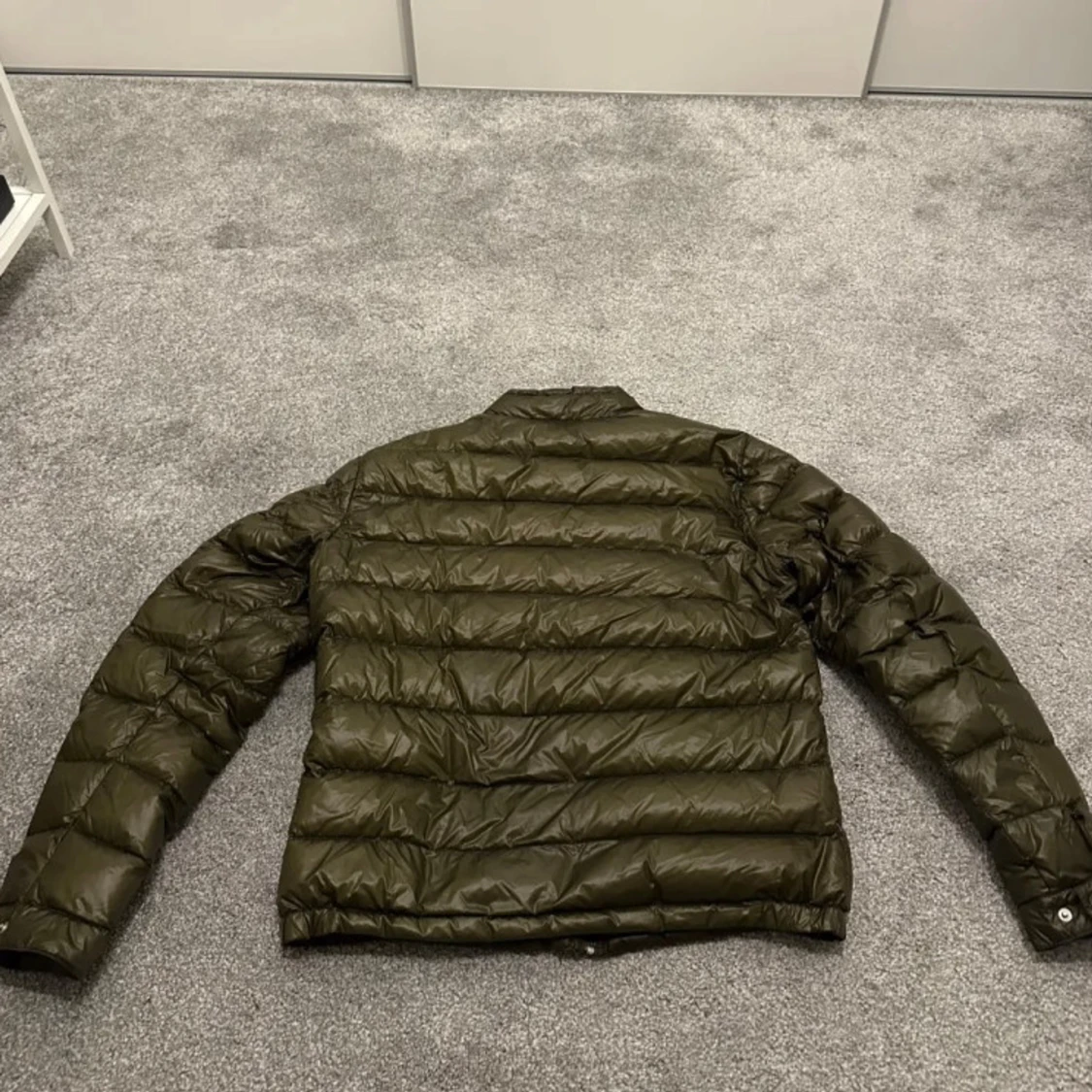 Moncler acorus jacka som jag använt i ungefär två månader. Den har ett litet hål på baksidan som jag har försökt och tejpa ihop men borde gå att limma ihop. Priset går att diskutera. Den är självklart äkta och jag har bevis på det