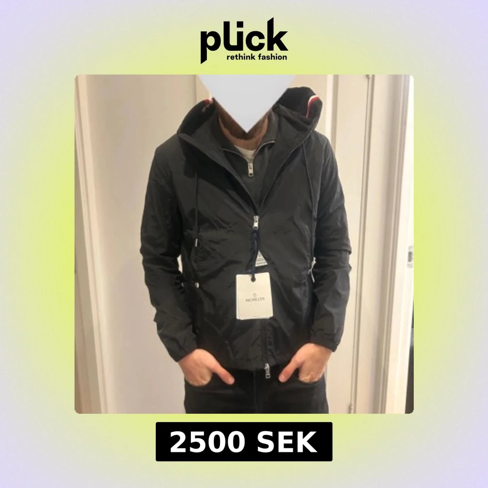 Svart vindjacka från Moncler med snygg huva som har röd och vit detalj. Jackan har dragkedja framtill, snörning i midjan och Moncler-logga på insidan. Perfekt för dig som gillar stilrena och sportiga plagg. Materialet är lätt och känns skönt mot kroppen.