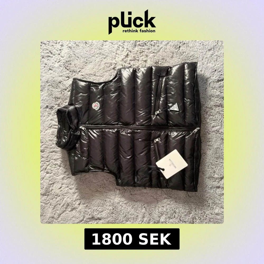 Snygg svart dunväst från Moncler med glansig finish. Västen har dragkedja och flera praktiska fickor med dragkedjor. Perfekt för kyligare dagar när du vill hålla stilen.
