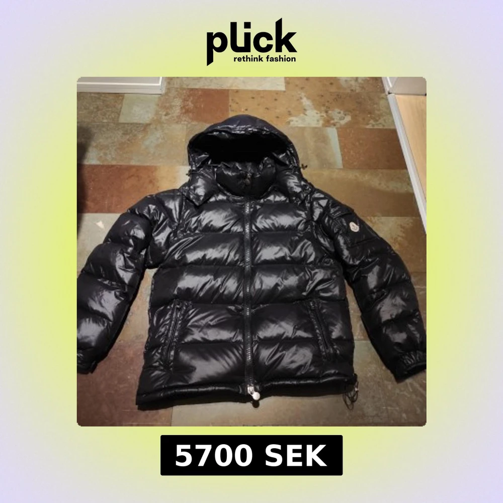 Säljer en äkta svart Moncler Maya i bra skick. Inga skador eller defekter, enda ar att lite styng på armen har åkt upp men det ar inget man själv märker vid användning! Jackan innehäller Scan både på insidan av jackan (bild ovanför) samt på jackärmen. Priset är ej hugget i sten! Alltid öppen för frågor och förhandlingar! Storlek 3 som motsvarar M/L