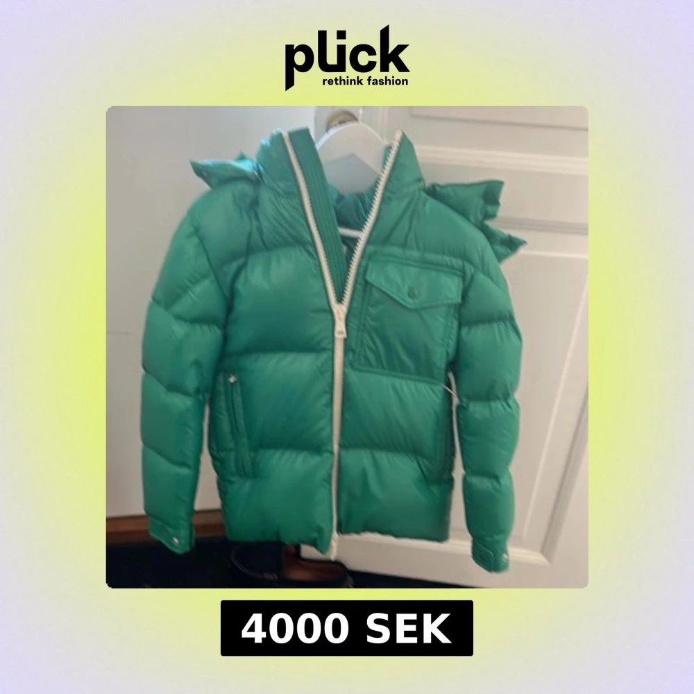 Skit Snygg grön pufferjacka från Moncler med vit dragkedja, hög krage och Moncler-logga på ärmen. Jackan har en bröstficka med knapp och är vadderad för extra värme. Perfekt för kalla dagar och ger en cool streetstyle-vibe. Har använt den en halv winter pga blev för liten och växte som ogräs, den i fint skick och den står ut i mängden