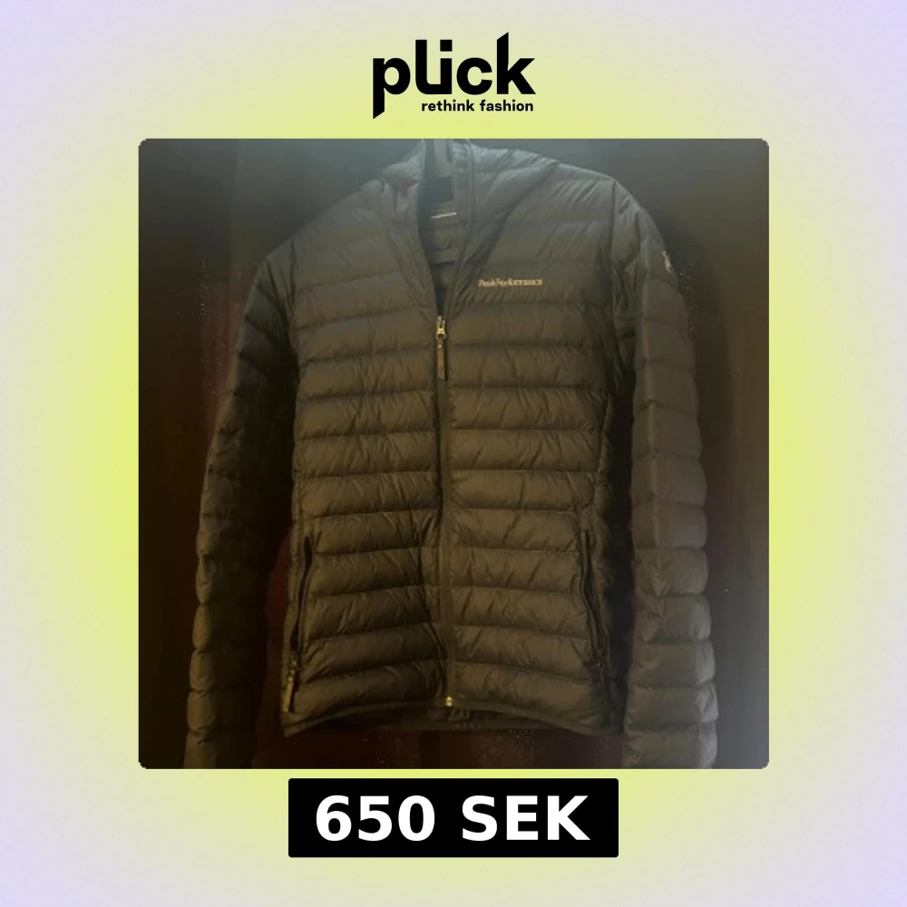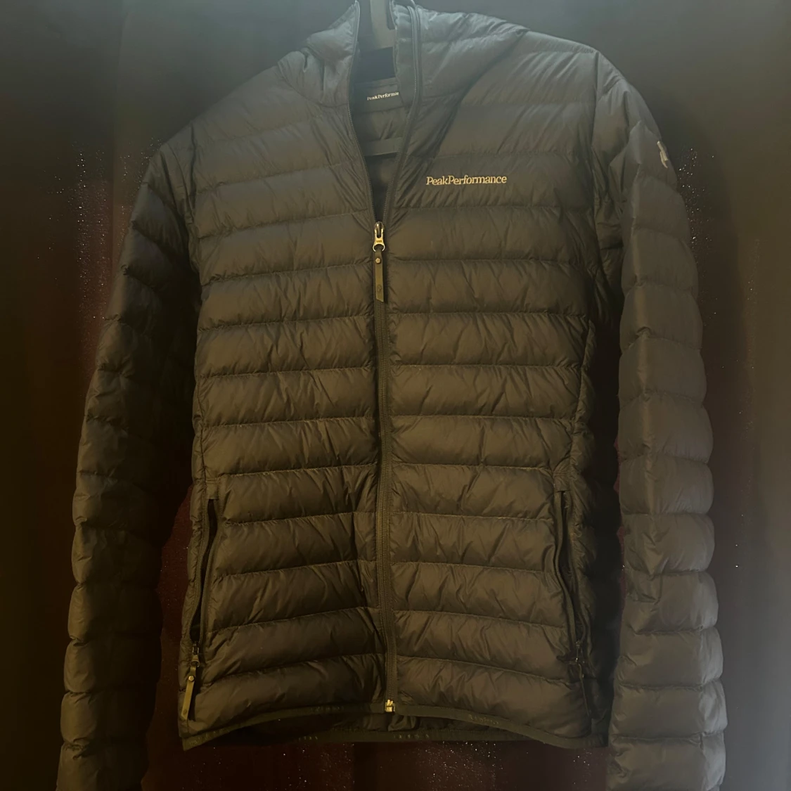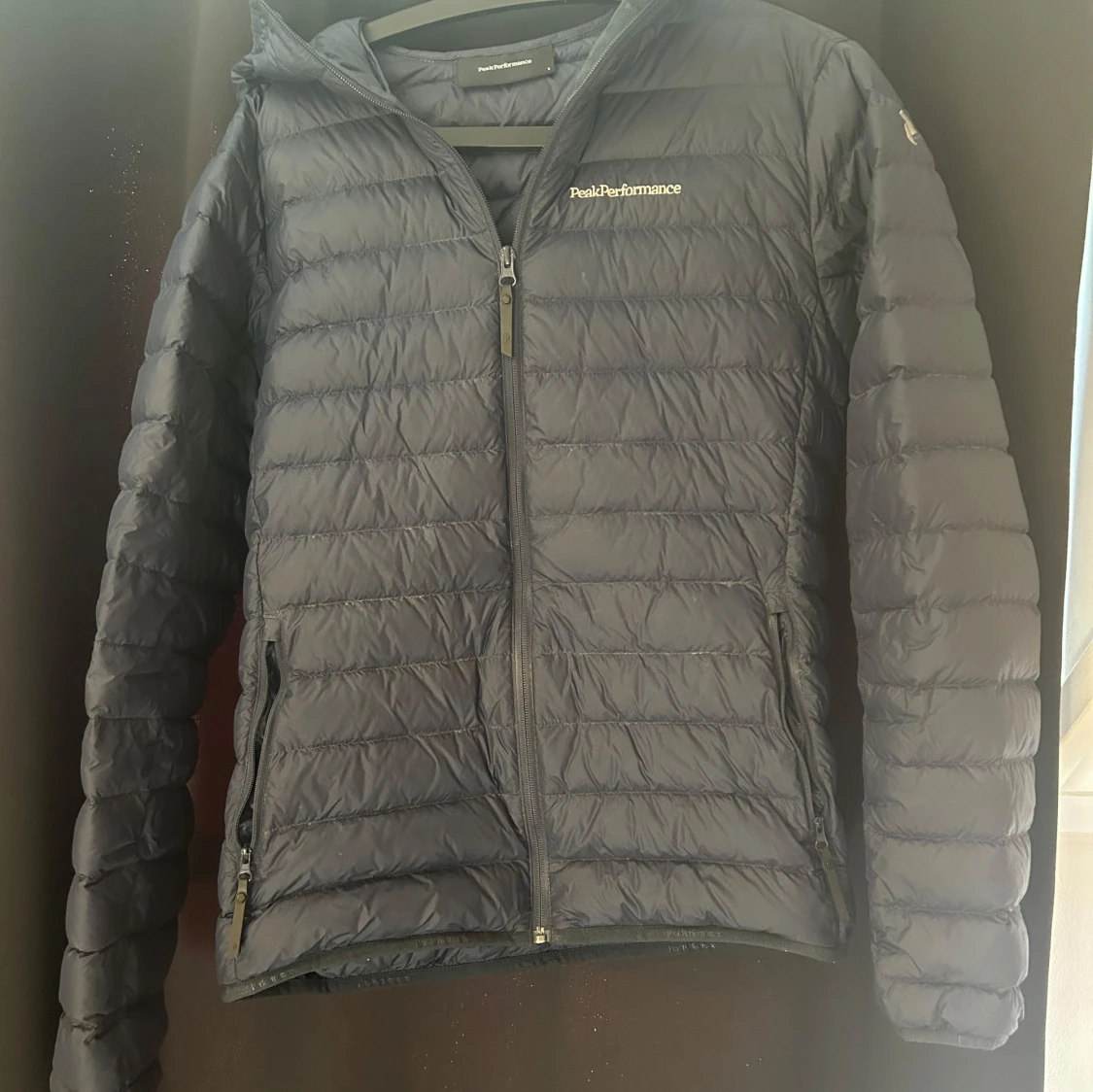 Snygg svart dunjacka från Peak Performance med dragkedja och långärmad design. Jackan har en quiltad stil och är perfekt för kyligare väder. Den har en diskret logga på bröstet och praktiska fickor med dragkedja.