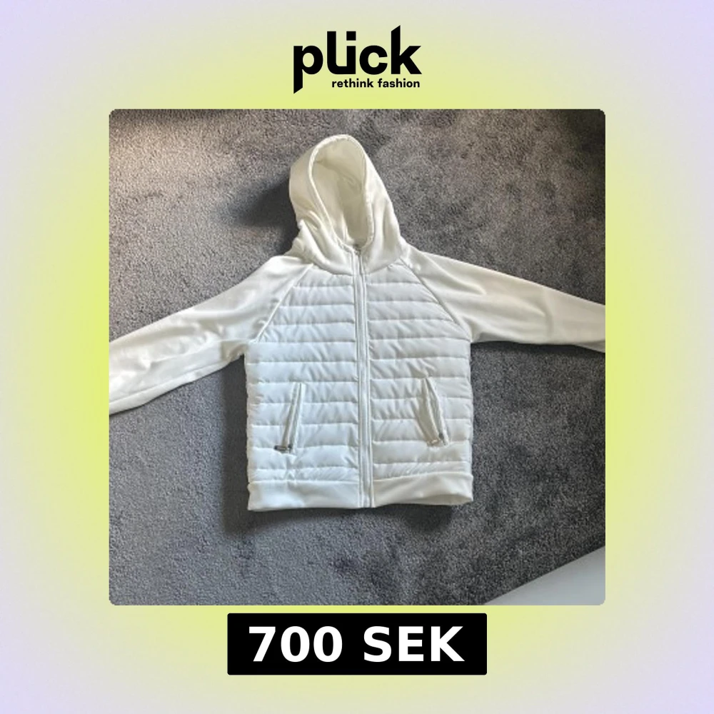 Säljer en stilren vit pufferjacka med huva och dragkedja framtill. Jackan har quiltade partier på kroppen och släta ärmar, samt två fickor med dragkedja. Den är aldrig använd och har inga skador, pris kan diskuteras vid snabb affär.