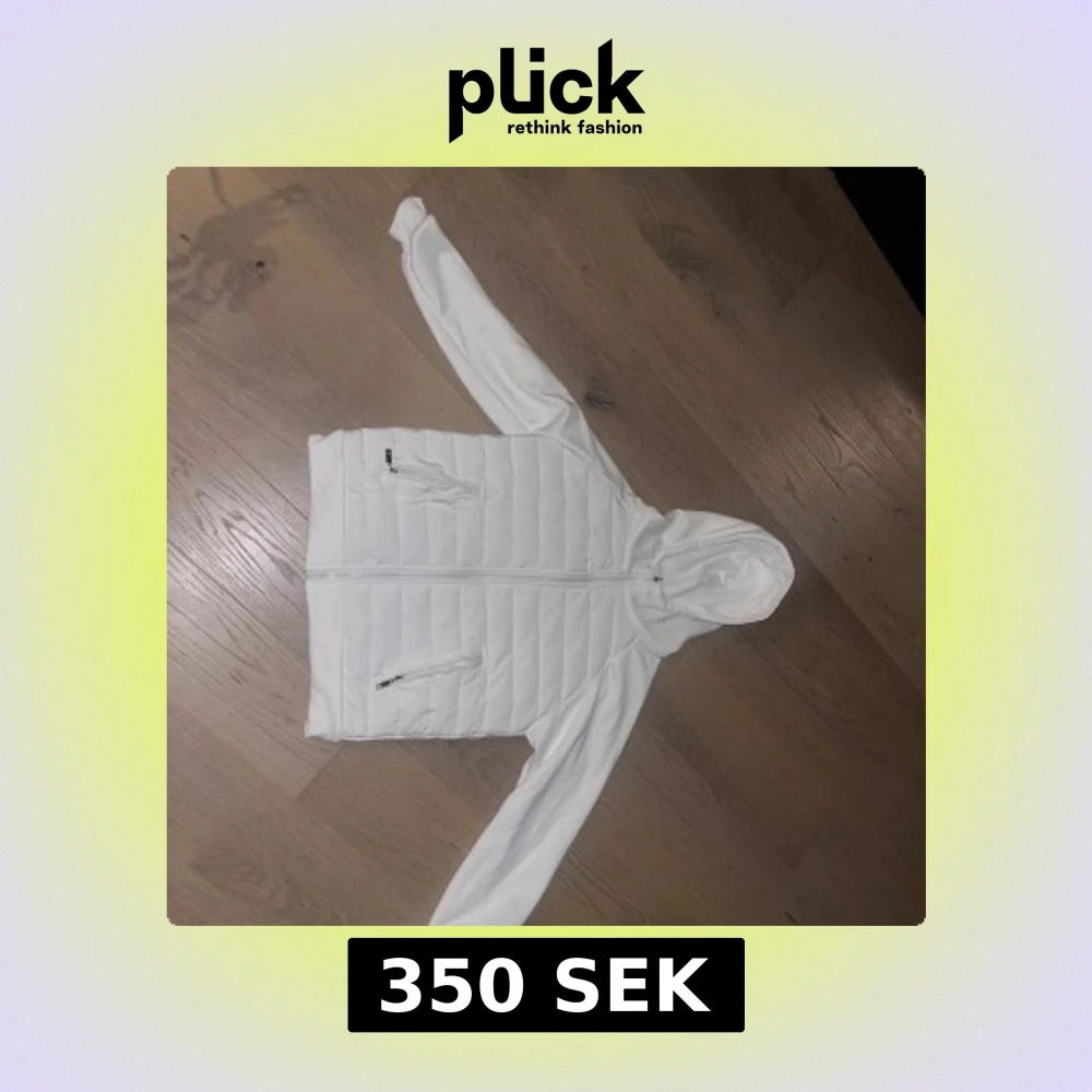 Snygg vit pufferjacka med huva och hel dragkedja framtill. Jackan har två dragkedjeförsedda fickor på magen och quiltad framsida och rygg. Perfekt för dig som gillar stilren och clean look.