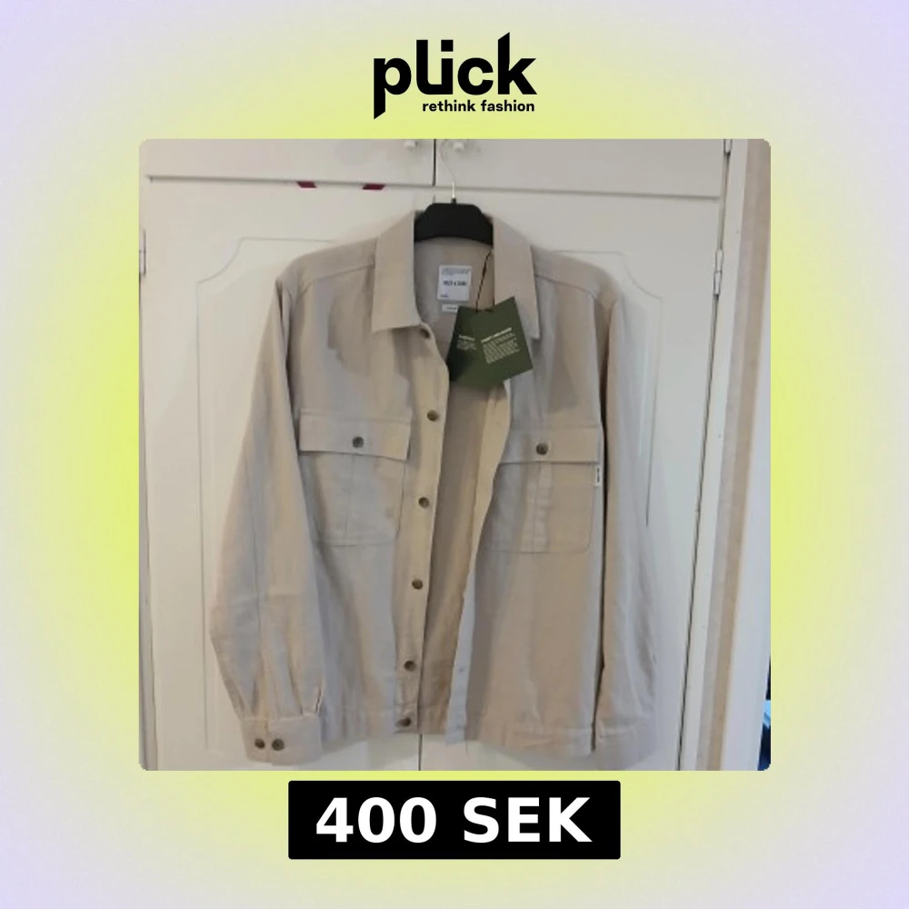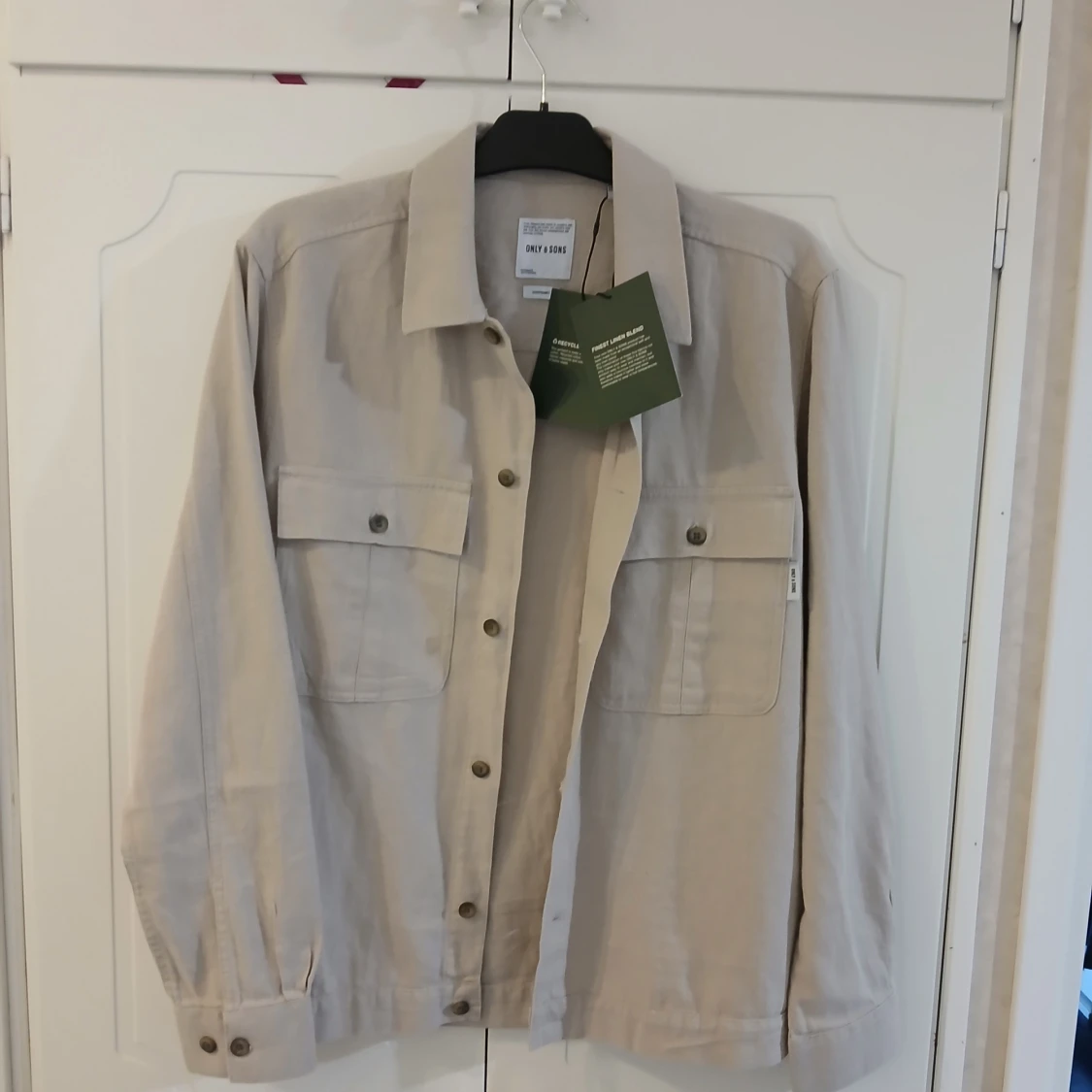 Helt ny, Snygg beige overshirt från Only & Sons i en luftig linnemix. Jackan har klassisk krage, knäppning framtill och två stora bröstfickor med lock. Perfekt för lager-på-lager och en clean look. Storlek S men passar s/m