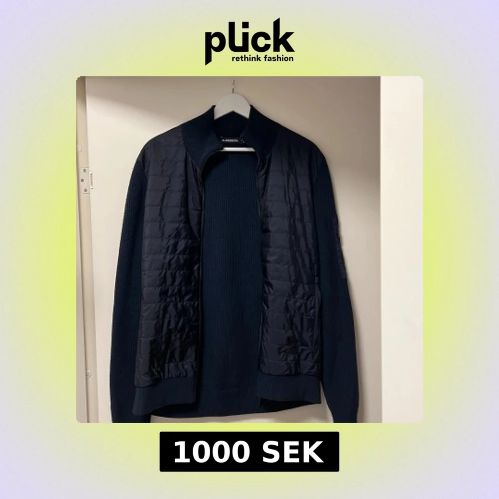 Snygg mörkblå stickad jacka från J.Lindberg knappt använd. Perfekt för kyligare dagar med sin stilrena design och bekväma passform.