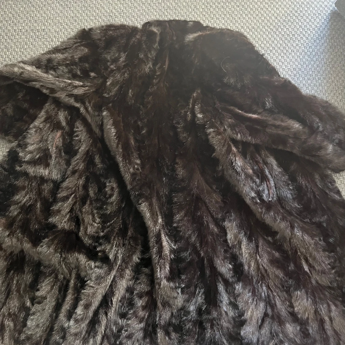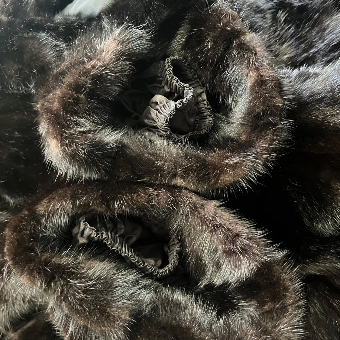 Säljer en klassisk lång pälsjacka i mörkbrunt från Bergströms Gefle. Jackan har lång ärm, hög krage och knäppning framtill. Fodrad insida med broderade initialer. Perfekt för kalla dagar när du vill känna dig extra lyxig.