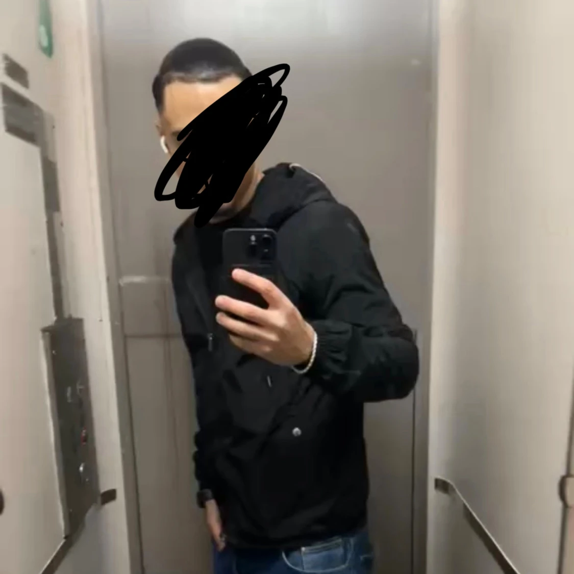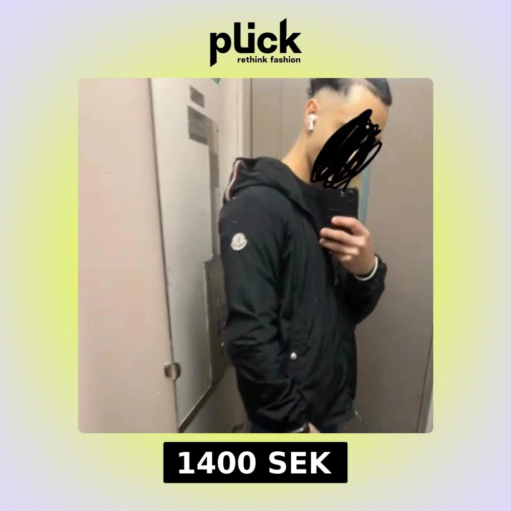 I väldigt bra skick! För mer frågor eller funderingar skriv!! Säljer en svart vindjacka från Moncler med huva och dragkedja framtill. Jackan har snörning i huvan, två fickor med tryckknappar och Moncler-logga på ärmen. Snygga ränder på insidan av huvan ger extra stilpoäng. Perfekt för dig som vill ha en clean och sportig look.