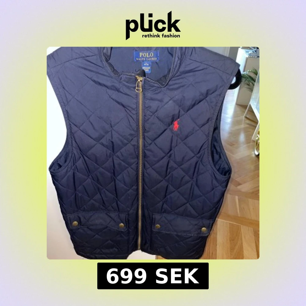 Mörkblå quiltad väst från Polo Ralph Lauren med dragkedja framtill, två fickor med tryckknappar och röd broderad logga på bröstet. Klassisk och stilren modell med hög krage, perfekt för lager-på-lager. Storlek L 14-16 men sitter mer som en S i herr. Jag är 175 och den sitter perfekt!