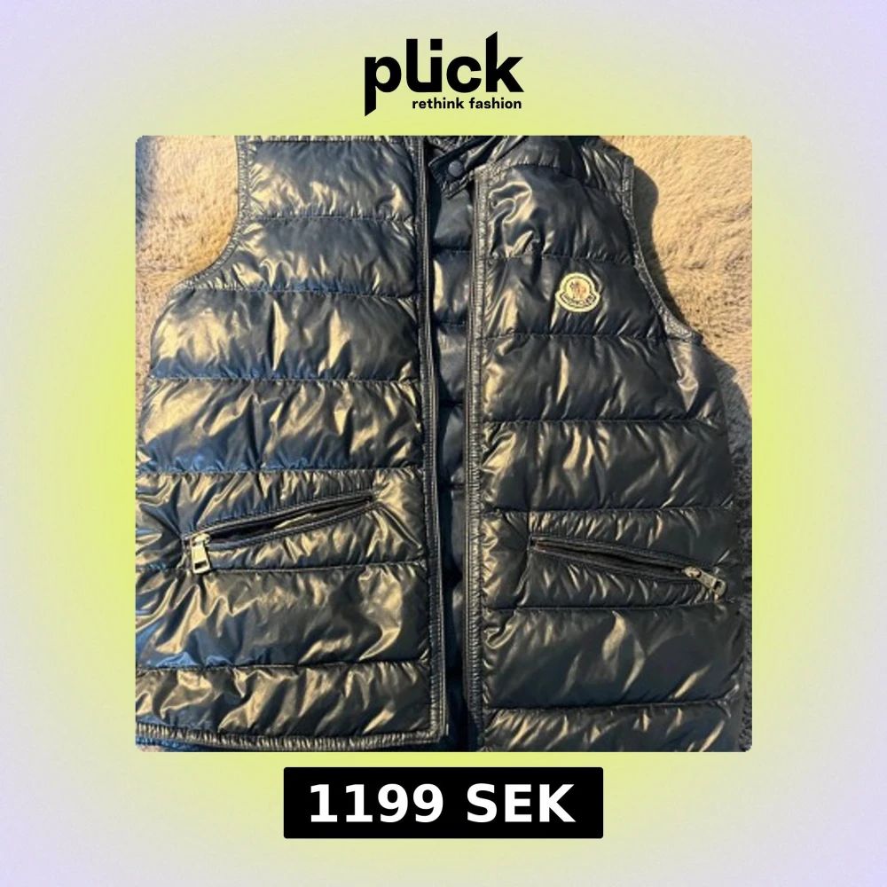 Snygg svart dunväst från Moncler med glansig finish. Västen har två dragkedjefickor framtill och Moncler-logga på bröstet. Klassisk quiltad design och hög krage. Perfekt för lager-på-lager-stil.ett litet hål på insidan, dm för mer bilder och för frågor🤟🏿🤩👍