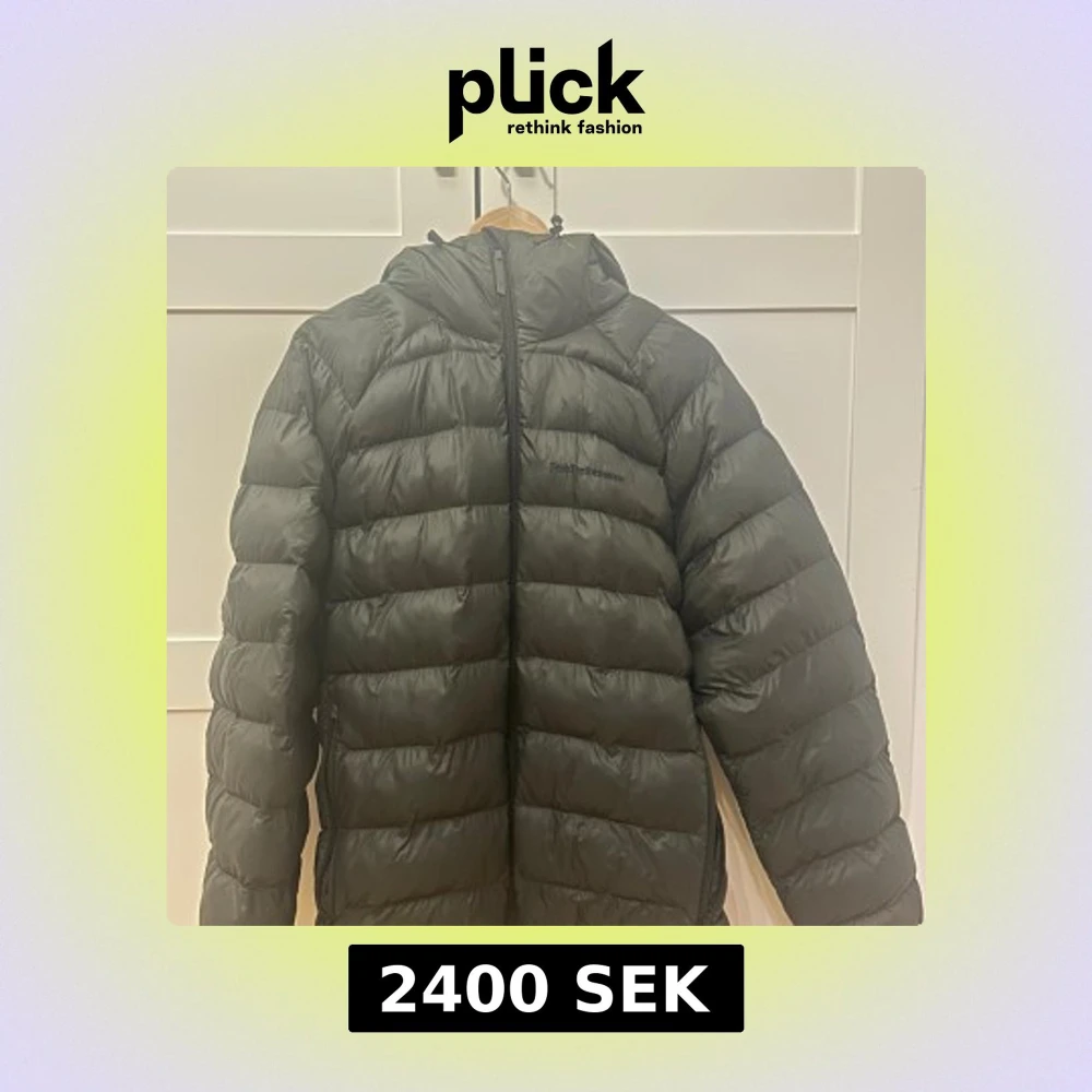 Säljer en oliv grön dunjacka från Peak Performance med huva och dragkedja. Jackan är quiltad och har en clean, sportig look. Perfekt för kalla dagar och har en skön passform. Klassisk logga på bröstet och snygga detaljer. Köptes på Intersport ny för 3300kr.