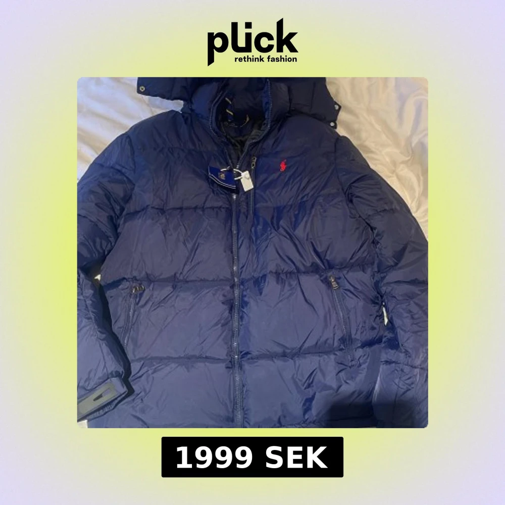 Snygg marinblå pufferjacka från Polo Ralph Lauren med röd logga på bröstet. Jackan är i storlek L och är perfekt för vintern. Den är helt oanvänd endast testad en gång.