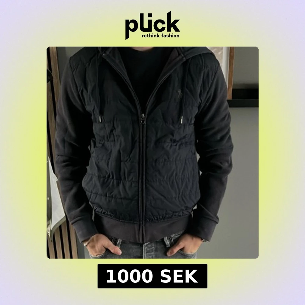 Svart pufferjacka från Polo Ralph Lauren med huva och dragkedja framtill.