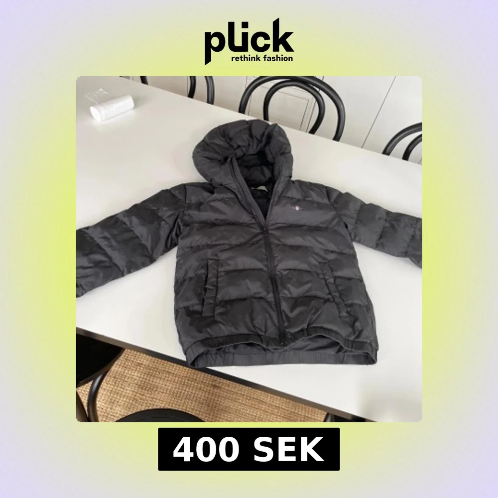Svart pufferjacka från GANT med huva och dragkedja framtill. Jackan har ett stilrent, quiltat mönster och två sidofickor. Perfekt för kalla dagar med sin fluffiga och bekväma passform. Diskret GANT-logga på bröstet och elastiska muddar vid ärmslut. Använd max 10 gånger