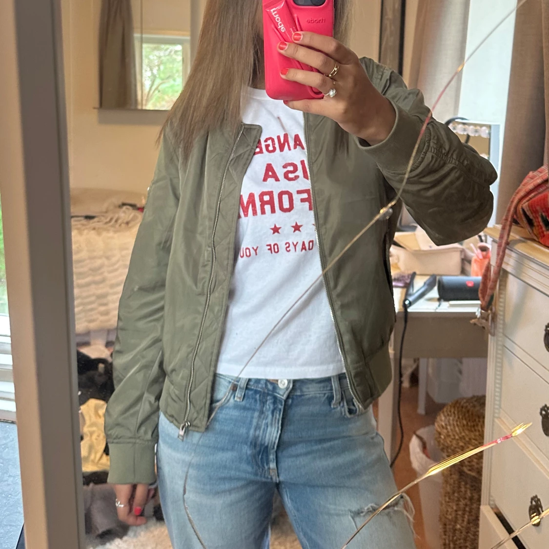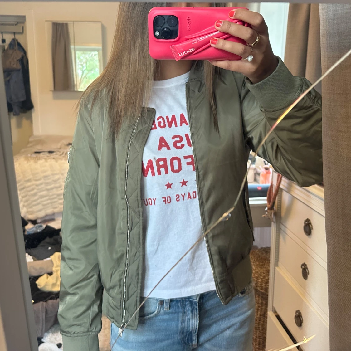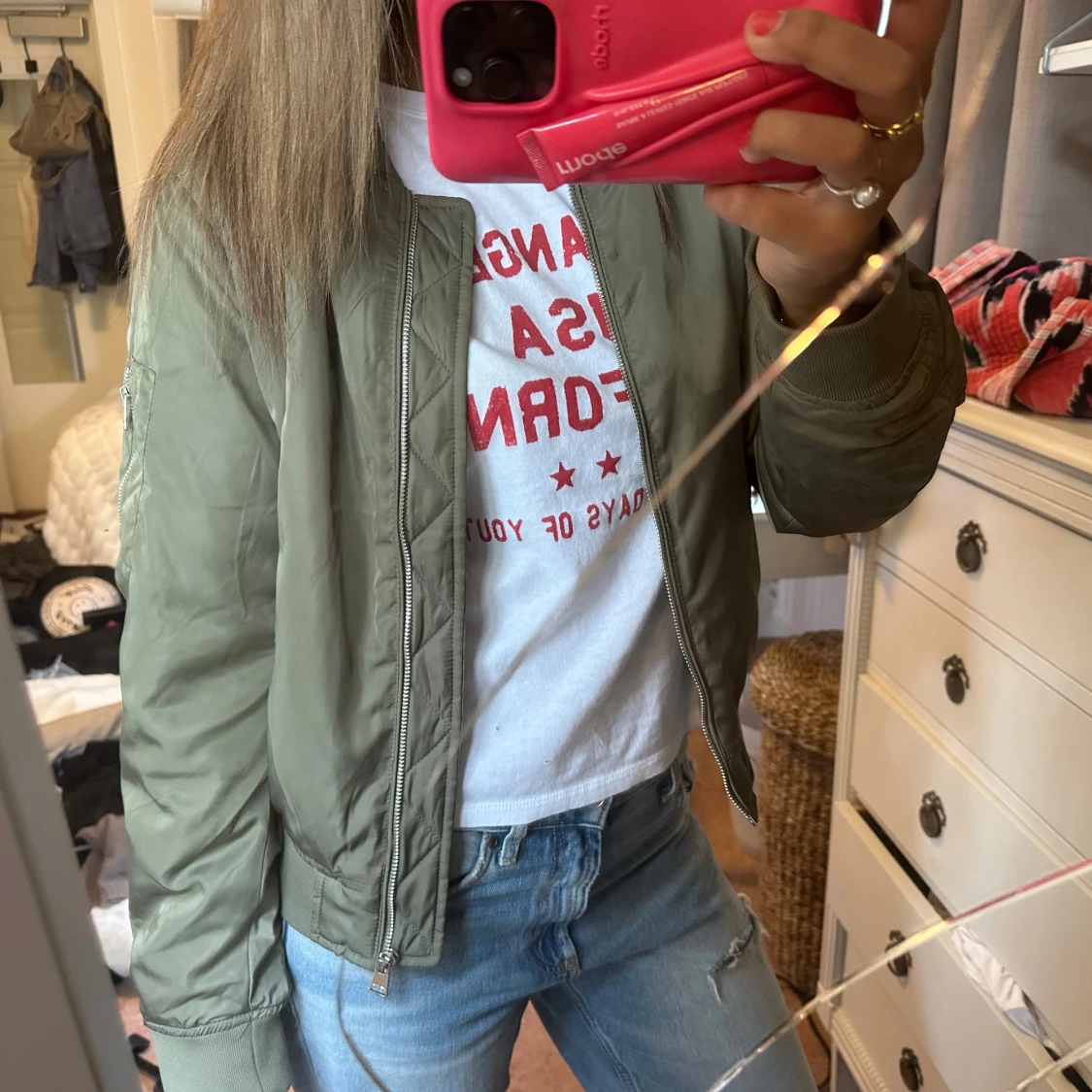 Snygg olivgrön bomberjacka med klassisk passform och dragkedja framtill. Jackan har ribbade muddar vid ärmslut och midja samt en ärmficka med dragkedja. Perfekt för dig som gillar en stilren och avslappnad look.