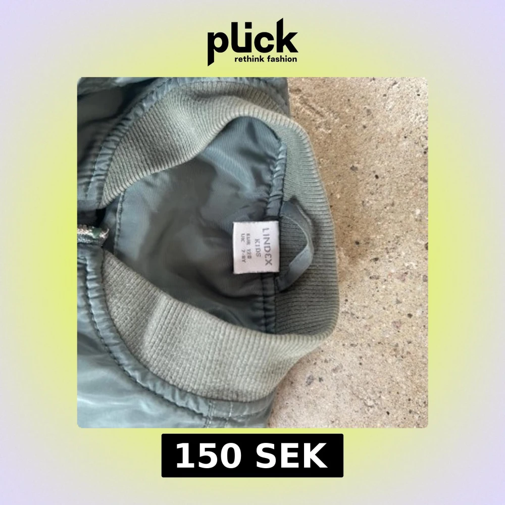 Snygg grön bomberjacka från Lindex med dragkedja framtill och ribbade muddar vid ärmslut och nederkant. Jackan har praktiska fickor med knappar och en extra ficka med dragkedja på ärmen.