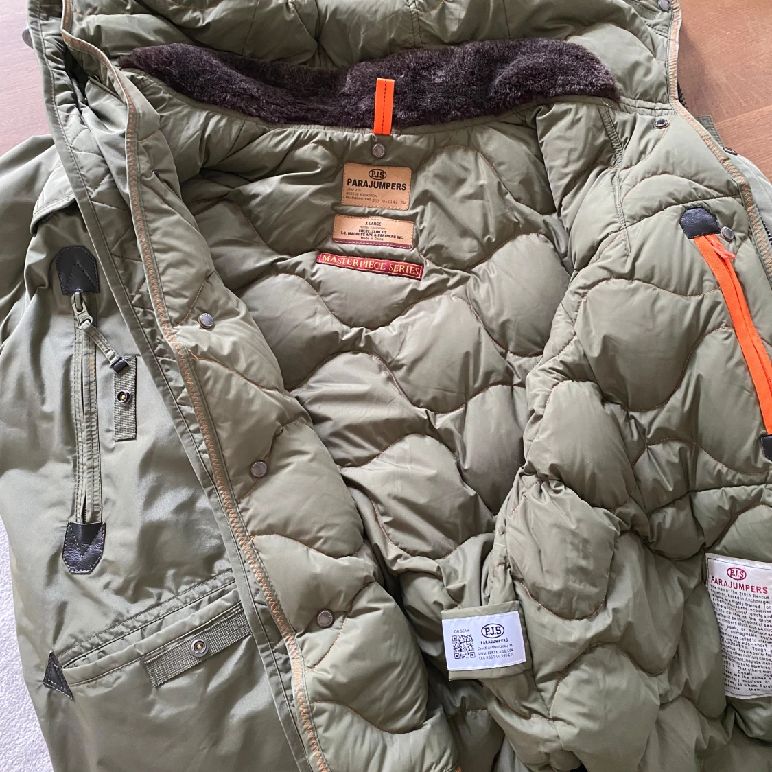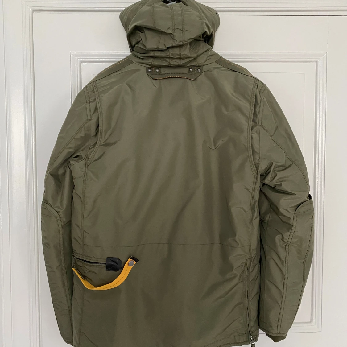 Säljer en grön Parajumpers Anchorage dunjacka med huva, flera fickor och snygga detaljer som gul rem och patch på ärmen. Jackan är quiltad på insidan och har dragkedja samt knappar framtill. Perfekt för kalla dagar och riktigt street. Inte använd. Nypris 9000 kr men säljer för 5000kr