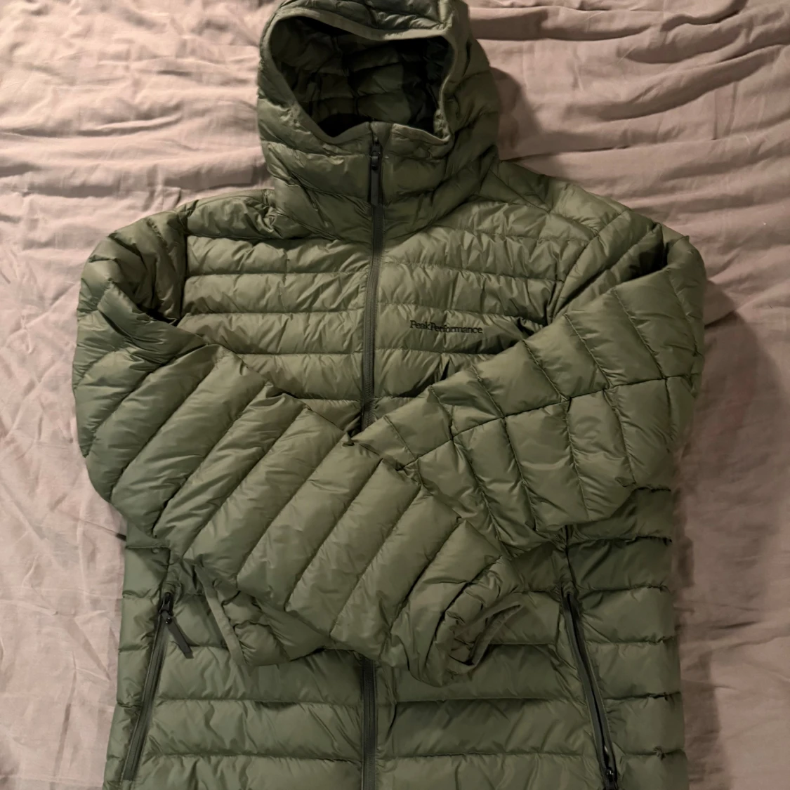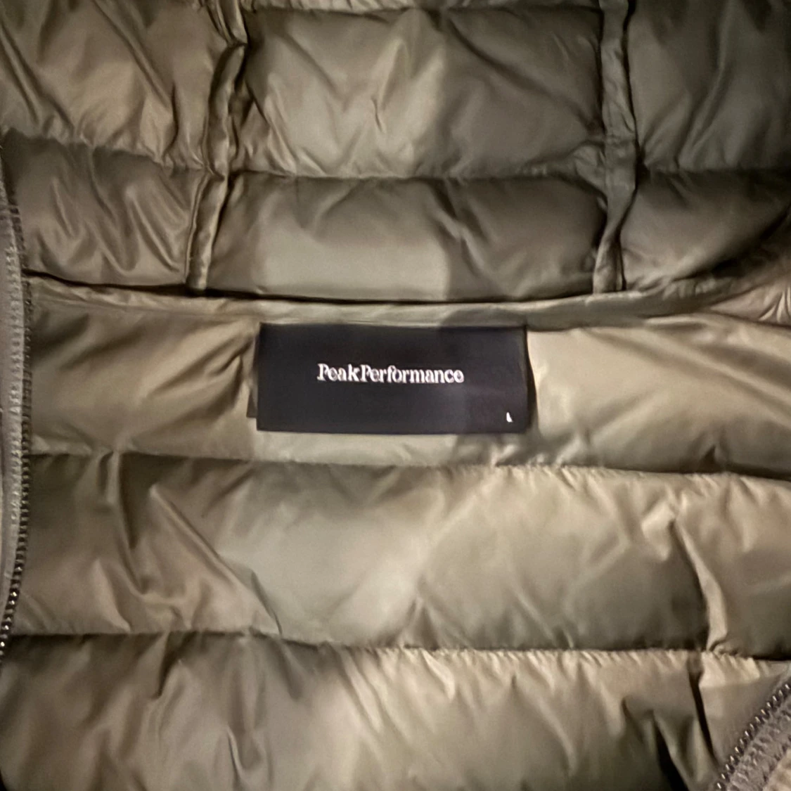 Säljer en grön down liner dunjacka från Peak Performance i storlek L. Jackan har huva, dragkedja framtill och två sidofickor med dragkedja. Lätt och smidig modell som är perfekt för kyliga dagar. Klassisk quiltad design och stilren look. Jackan är använd några få gånger och är i mycket fint skick. Ny pris är 3000kr