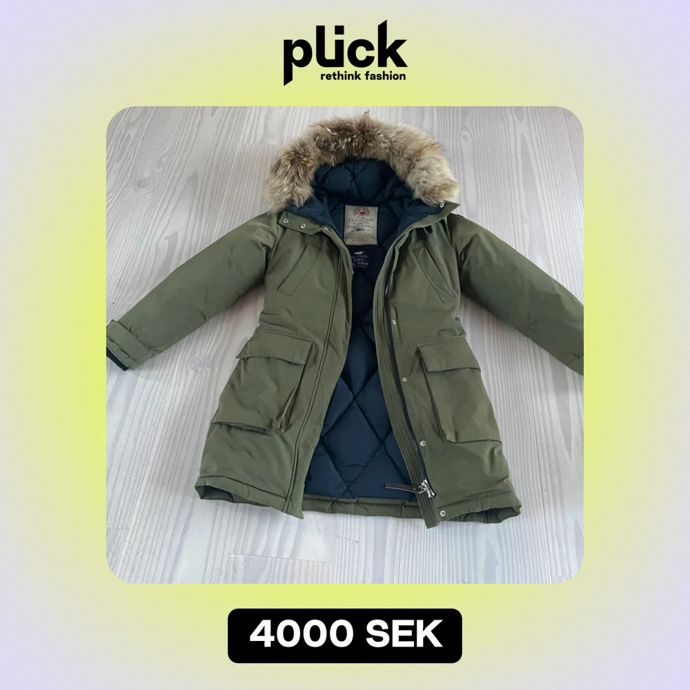 Säljer en snygg grön dunparkas från Lexington med pälsfodrad huva. Jackan har dragkedja och knappar framtill samt flera praktiska fickor. Perfekt för kalla vinterdagar! Avtagbar pälskrage