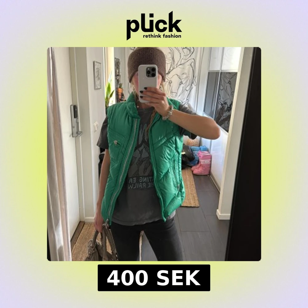 Säljer en snygg grön dunväst från J.Lindberg. Västen har dragkedja och flera praktiska fickor med dragkedjor. Sjukt cool detalj i outfits!❣️