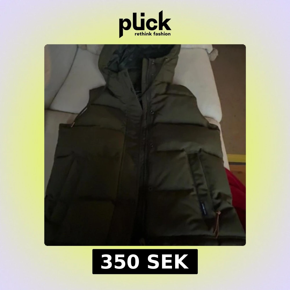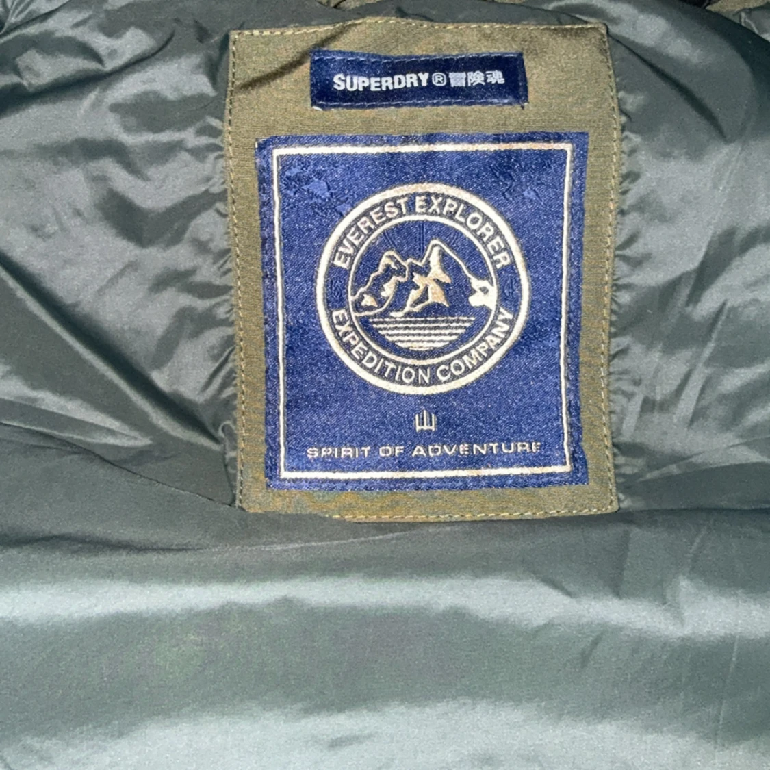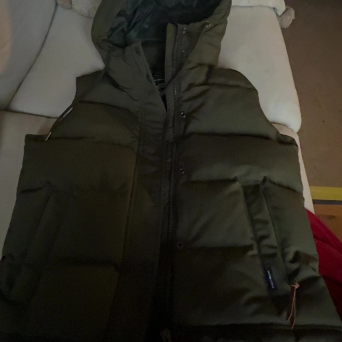 Säljer en mörkgrön dunväst från Superdry Everest Explorer med huva och praktiska fickor. Västen har quiltad design och dragkedja framtill. Aldrig använd