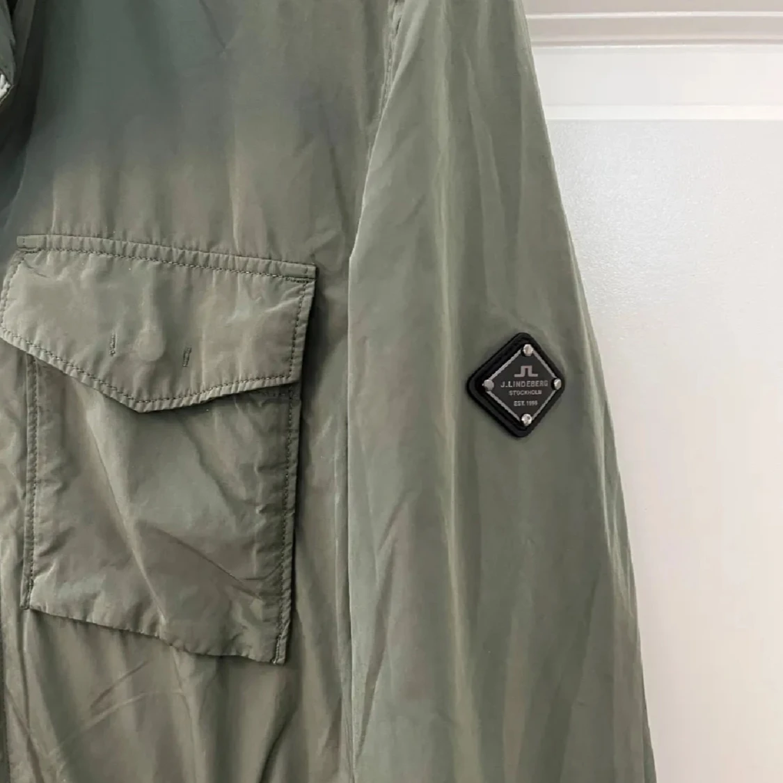 Snygg grön jacka från J.Lindeberg med dragkedja och knappar. Den har flera praktiska fickor och en stilren design. Perfekt för höst och vår. Priset ej hugget i sten Nypris : Runt 3500