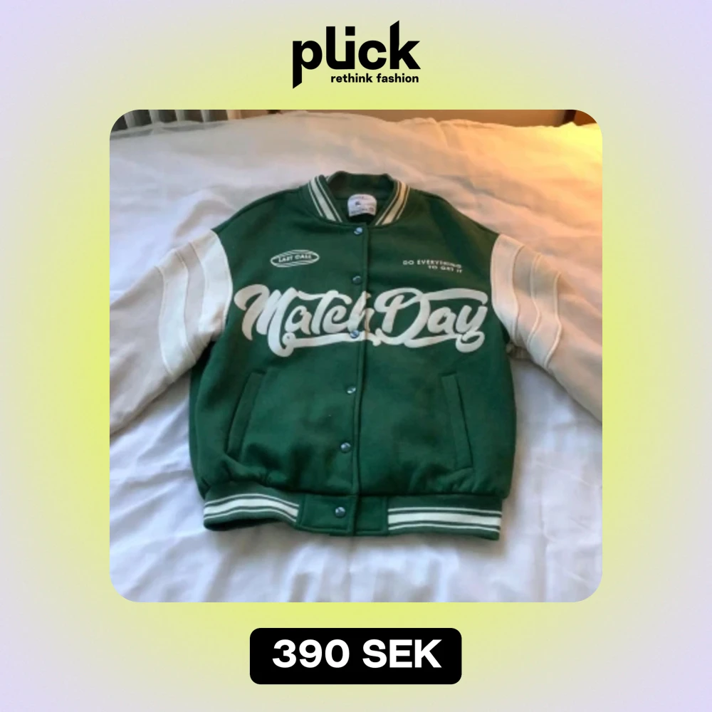 Jättesnygg grön jacka från bershka med vit text!! Den är i storlek XS men är lite oversized och sitter jättefint på❤️🔥 kom privat om ni vill veta hela priset, frakten. Hela betalningen sker genom swish.