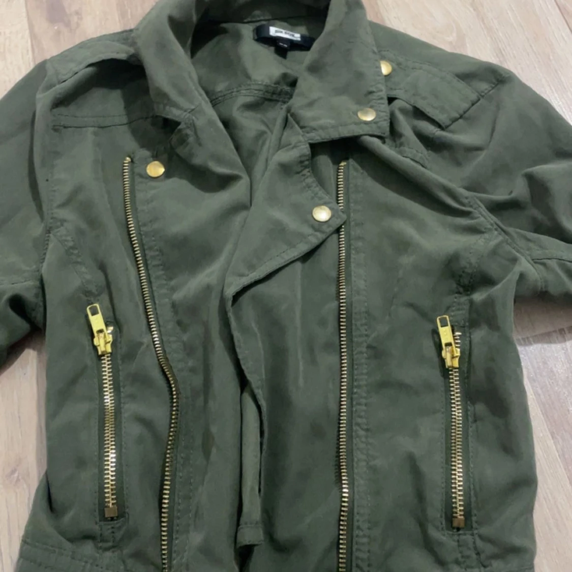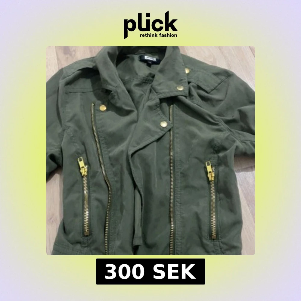Snygg grön jacka från Bik Bok med dragkedjor och knappar i guld. Helt slutsåld och är knappt använd. Passar perfekt nu i våren. Skriv om fler bilde