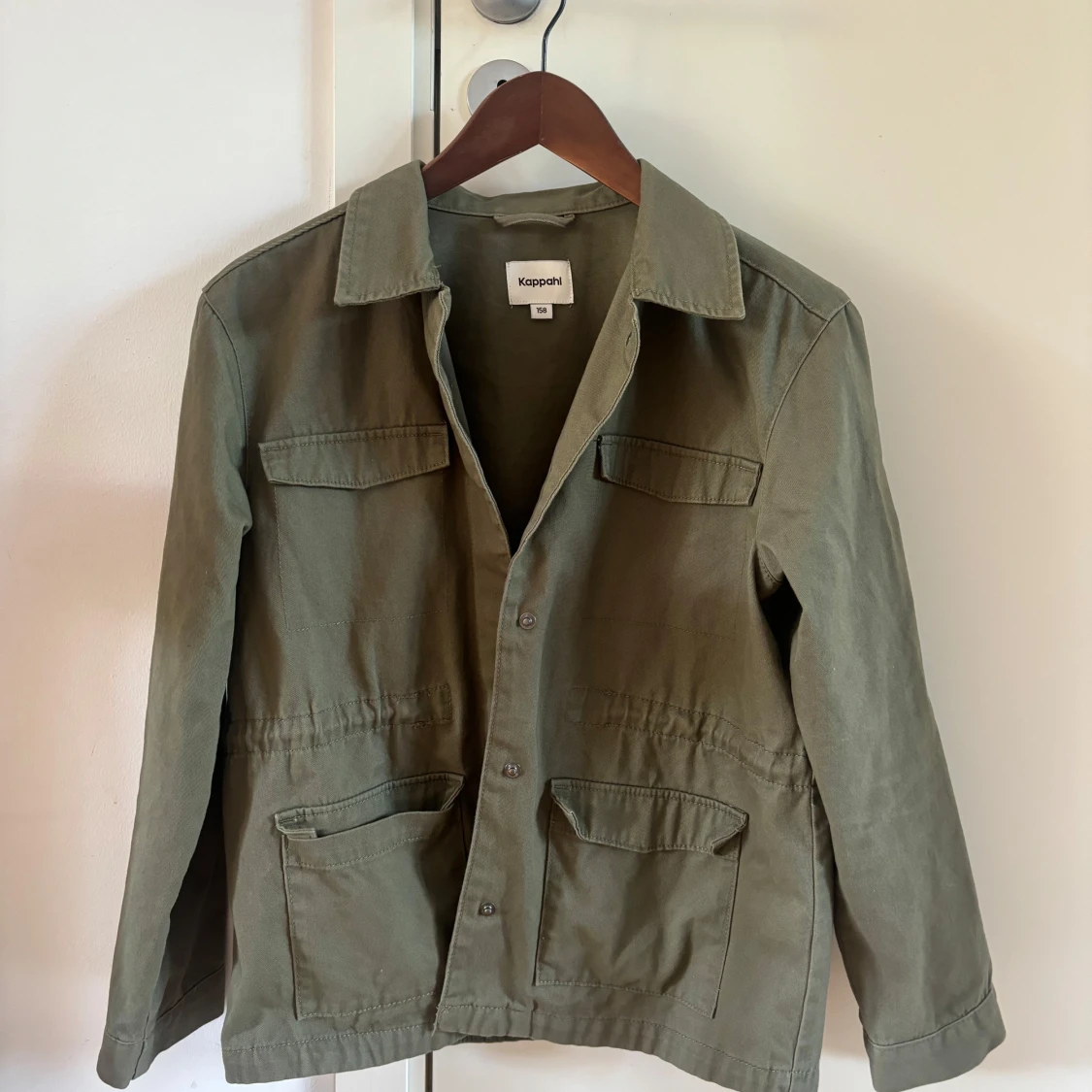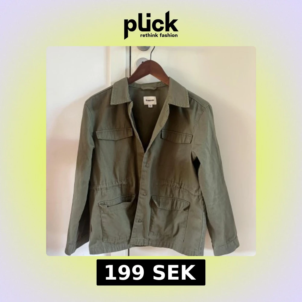 Grön jacka som funkar perfekt till sommar, höst eller vår. Använd fåtal gånger. Den har ett snöre inuti som gör att man kan dra in midjan.