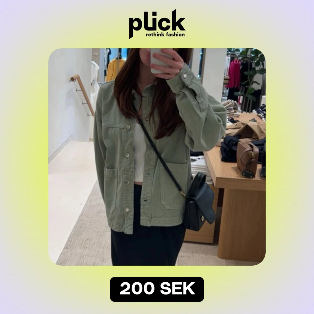 Säljer en snygg grön jeansjacka från Zara i normal passform.