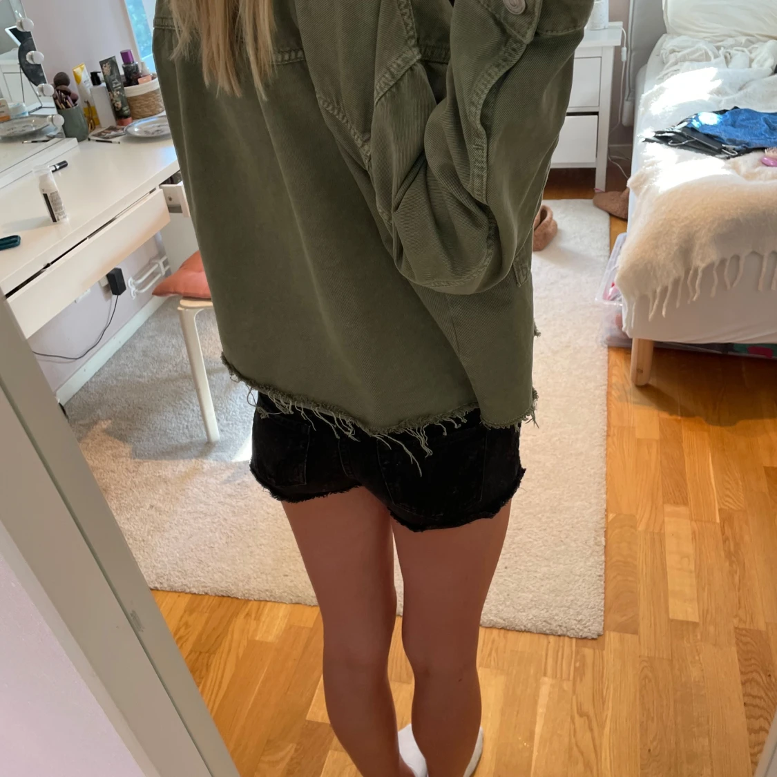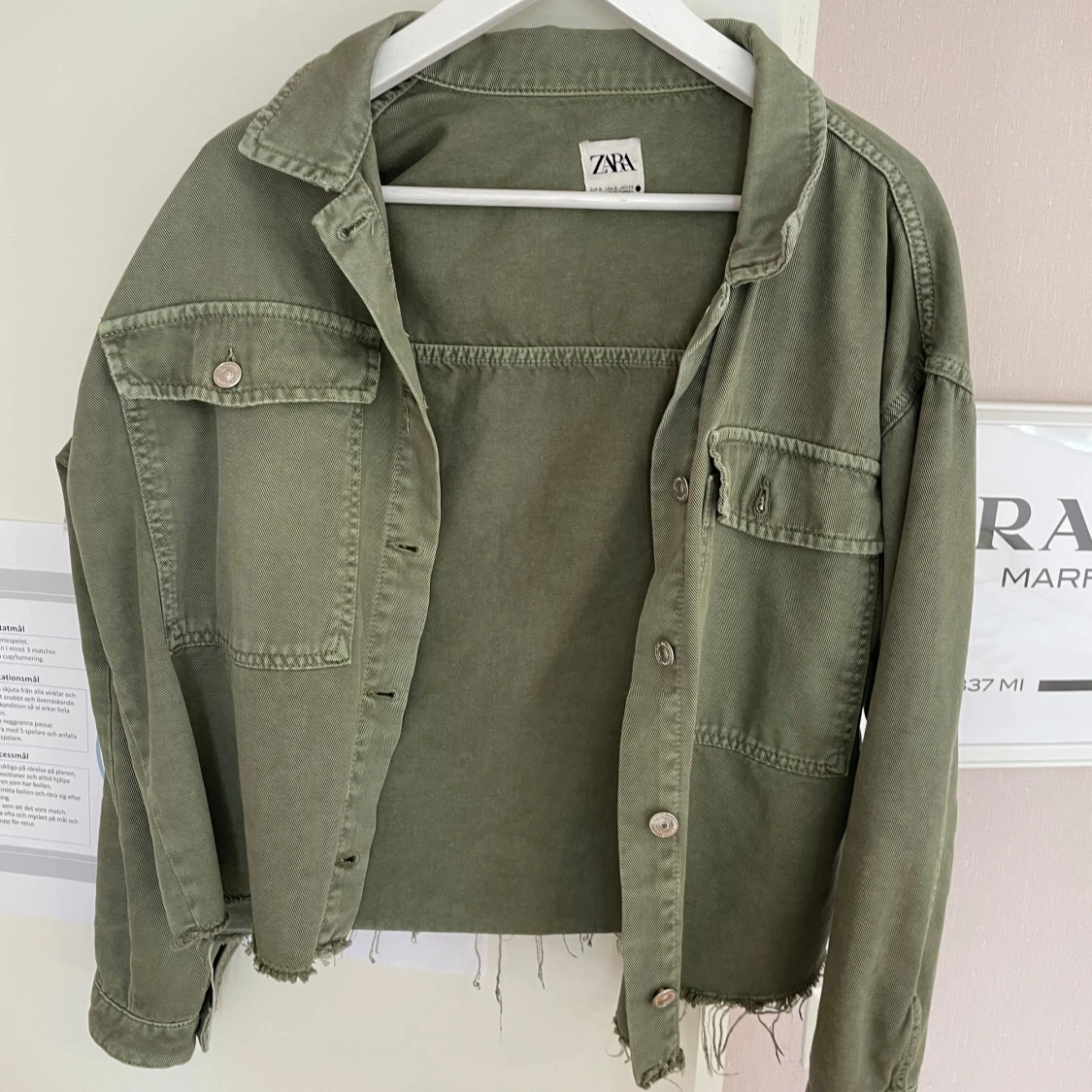 Jättefin grön jeansjacka från Zara som funkar utmärkt till hösten/våren. Jättebra skick! Skriv för frågor eller bilder💕