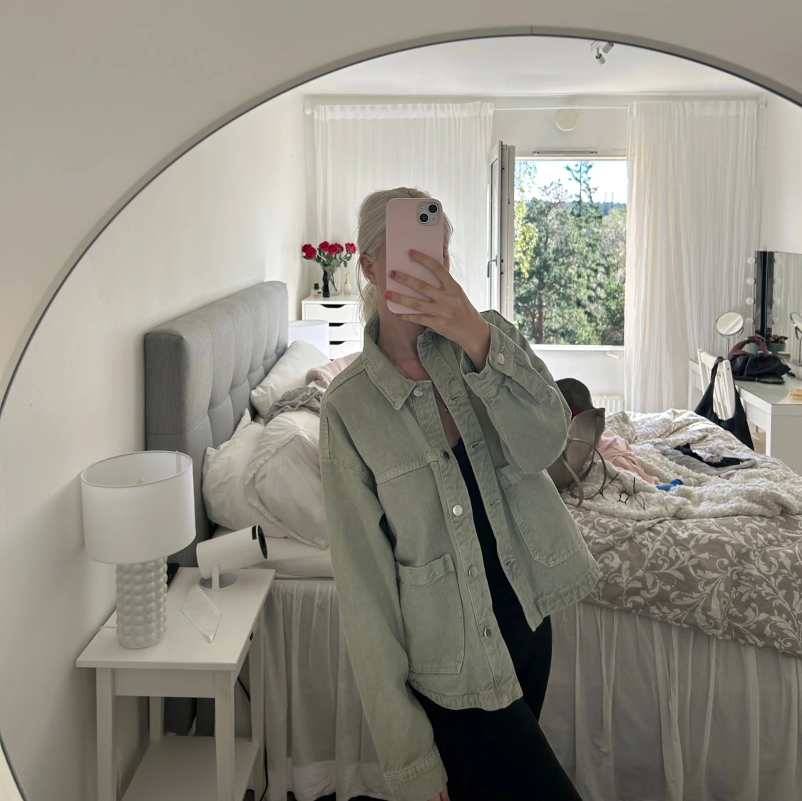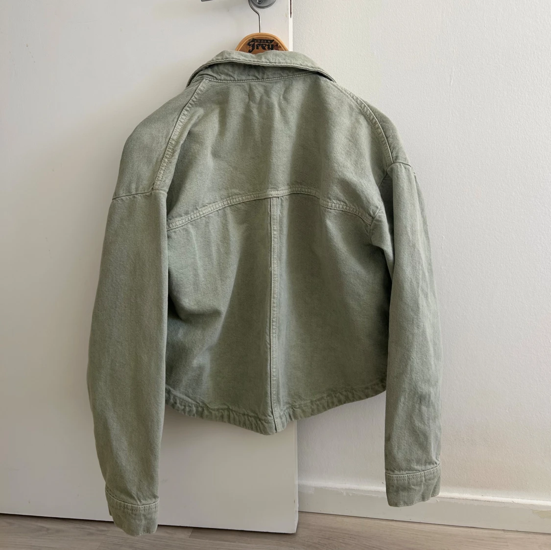 Säljer denna snygga gröna jeansjacka från Zara i storlek S💕tyvärr används den inte längre