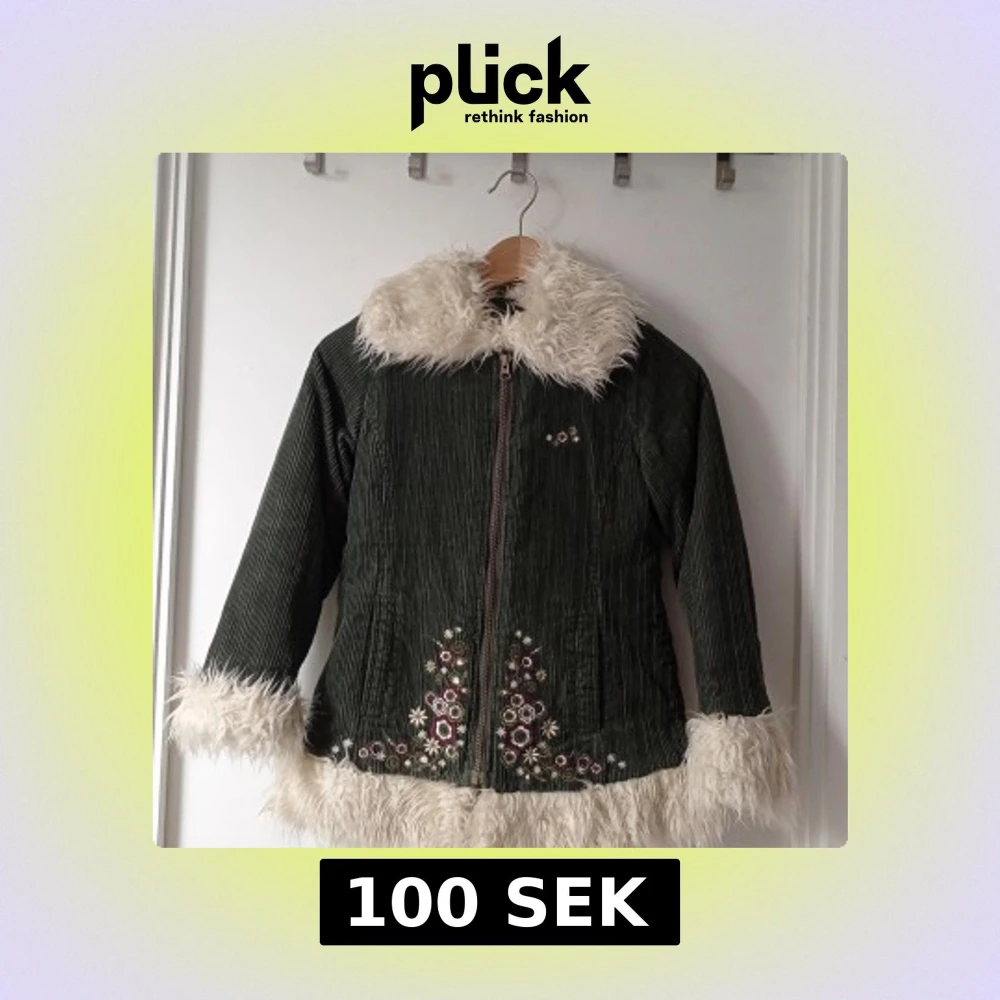 Säljer en grön manchesterjacka från Lindex med fluffig vit fuskpäls vid krage, ärmslut och nederkant. Jackan har en dragkedja framtill och fina broderade blommor i rött och vitt. Perfekt för kyliga dagar! Storlek 134. tyvärr är dragkedja lite trög men fungerar fortfarande att öppna och stänga.