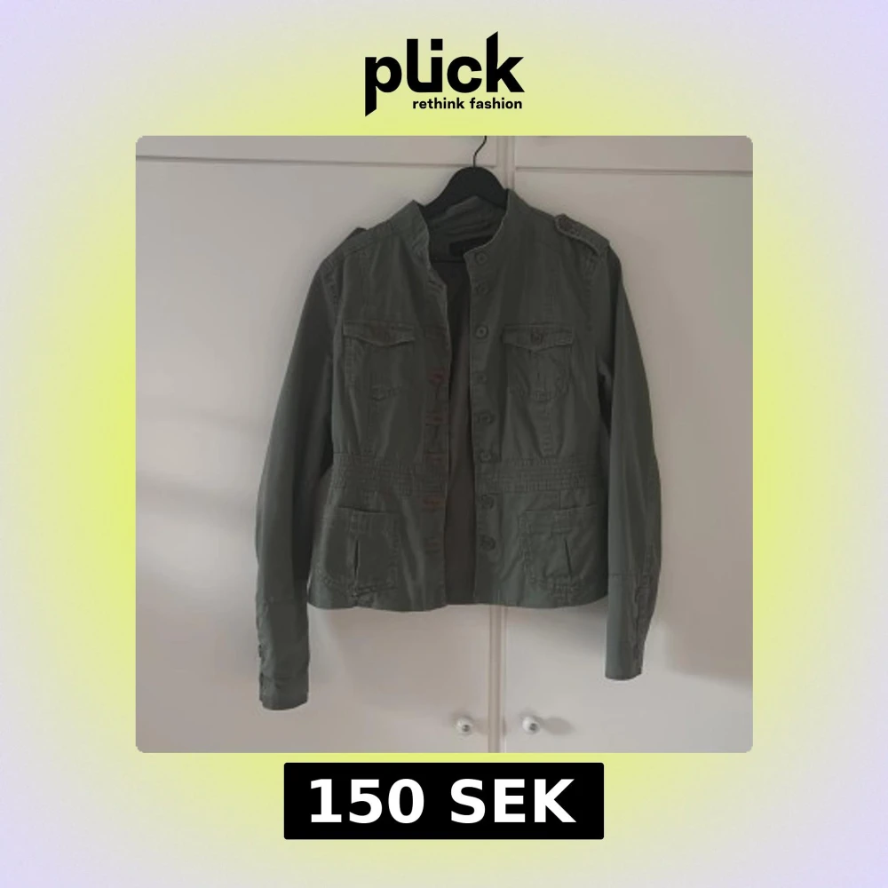 Snygg grön jacka från Vila med militärvibbar, ståkrage och knappar framtill. Jackan har fyra fickor med lock och axelklaffar som ger en cool look. Perfekt för lager-på-lager och passar till både jeans och kjol.