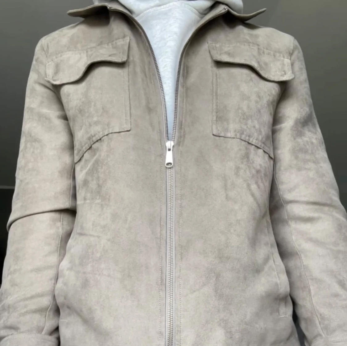 Snygg grön mockajacka med dragkedja framtill och två bröstfickor med lock. Jackan har en klassisk krage och raka ärmar, perfekt för dig som gillar stilren och clean look. Passformen är normal och materialet känns mjukt och lyxigt. Nypris 1000kr