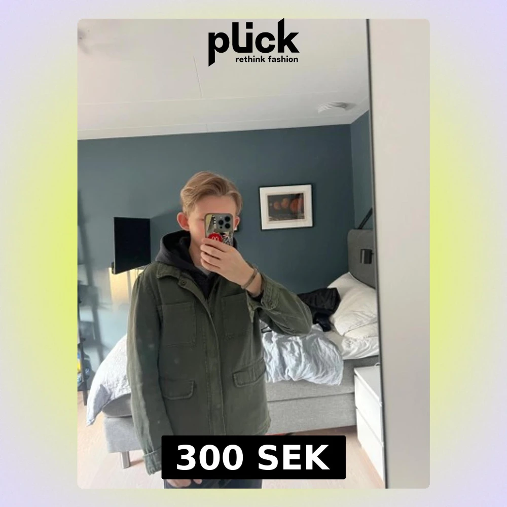 Säljer en grön overshirt från H&M i storlek 164. Jackan har fyra stora fickor framtill, klassisk krage och stängs med knappar. Säljer den pga av att den inte använts så mycket hör av er vid minsta lilla och pris kan diskuteras vid snabb affär