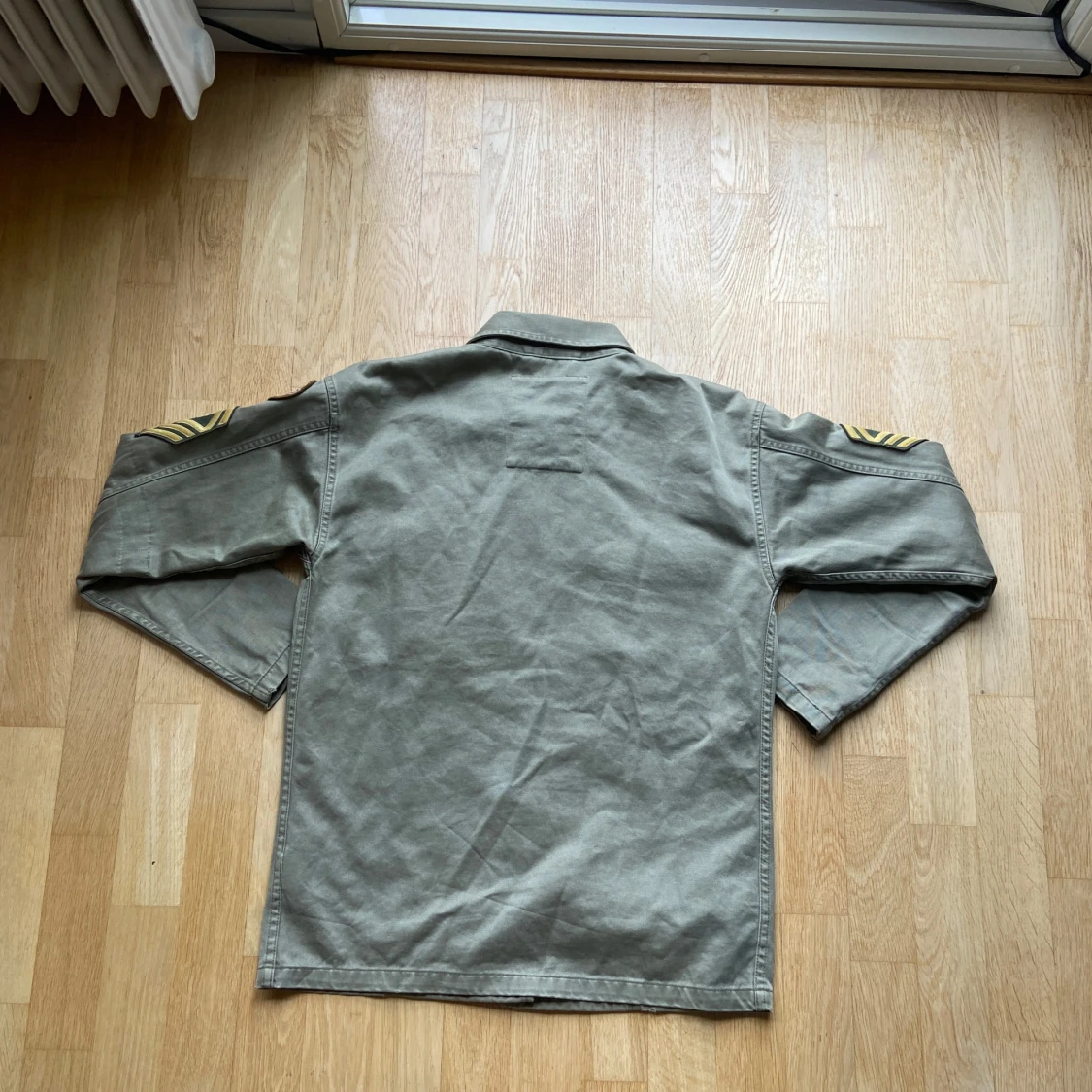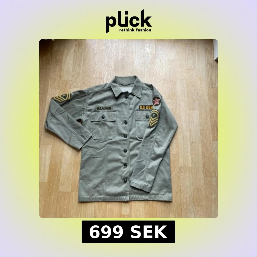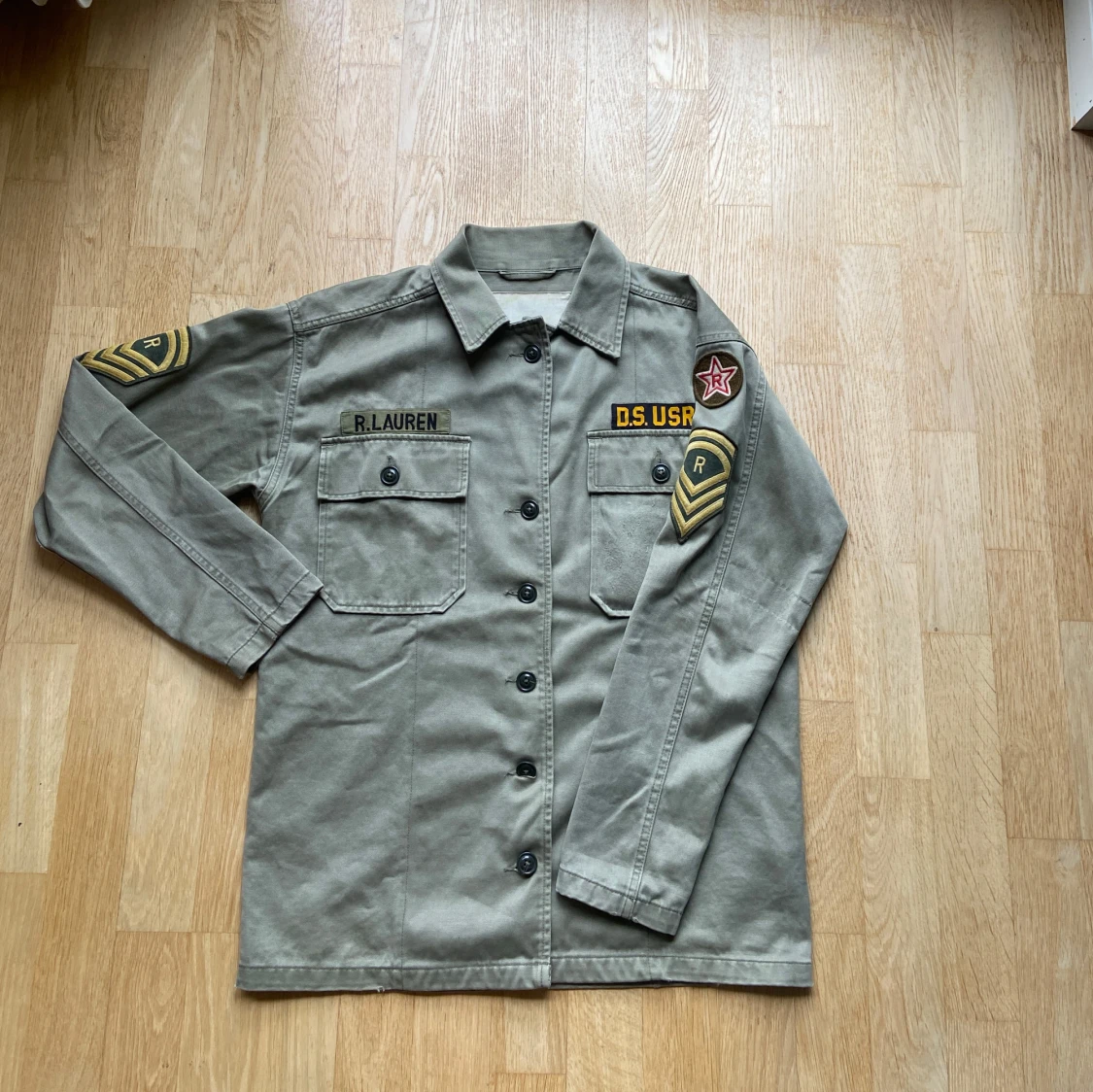 Militärinspirerad grön overshirt från Ralph Lauren med coola patchar och broderade detaljer på bröstet och ärmarna. Jackan har två stora bröstfickor med knappar och klassisk krage. Perfekt för dig som gillar streetstyle och utility-vibe.