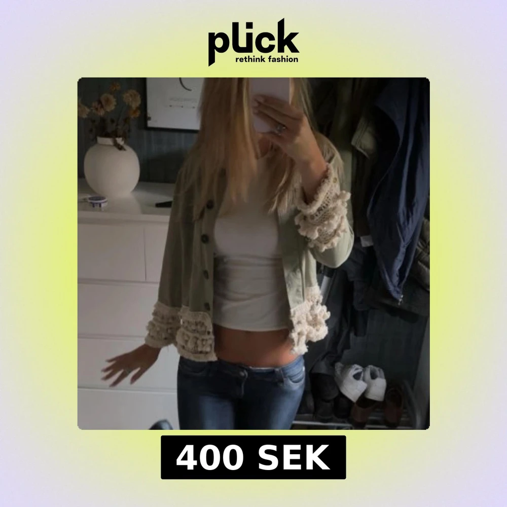Snygg ljusgrön overshirt med croppad passform och unika spets- och volangdetaljer vid ärmslut och nederkant. Jackan har knappar framtill och är perfekt för dig som vill sticka ut med en cool och bohemisk stil.