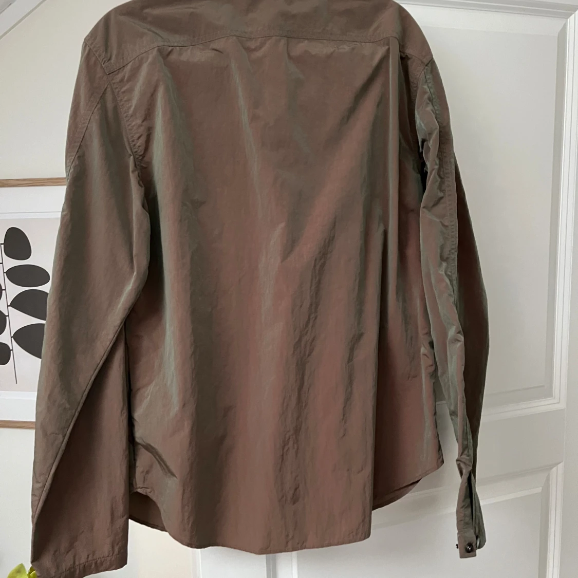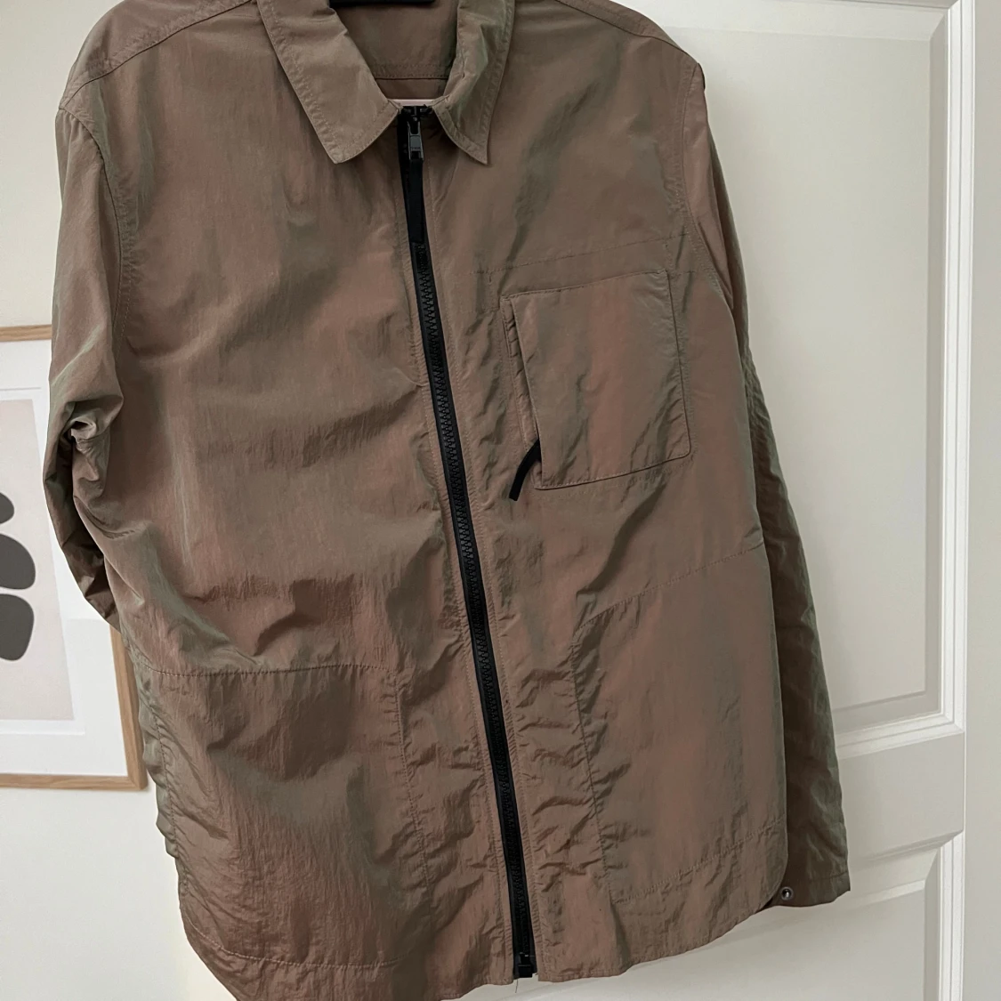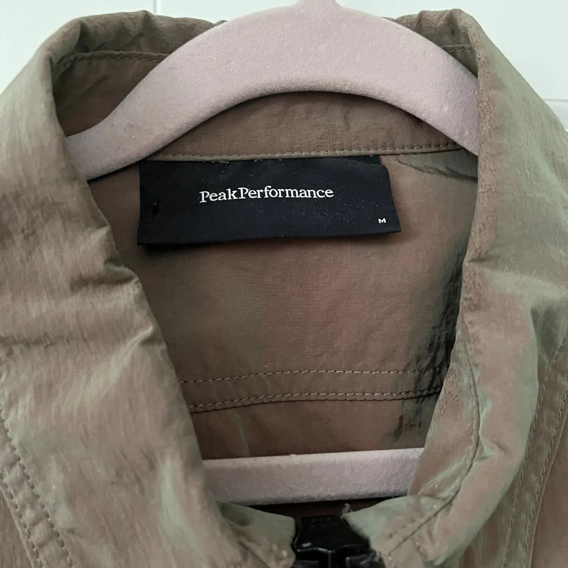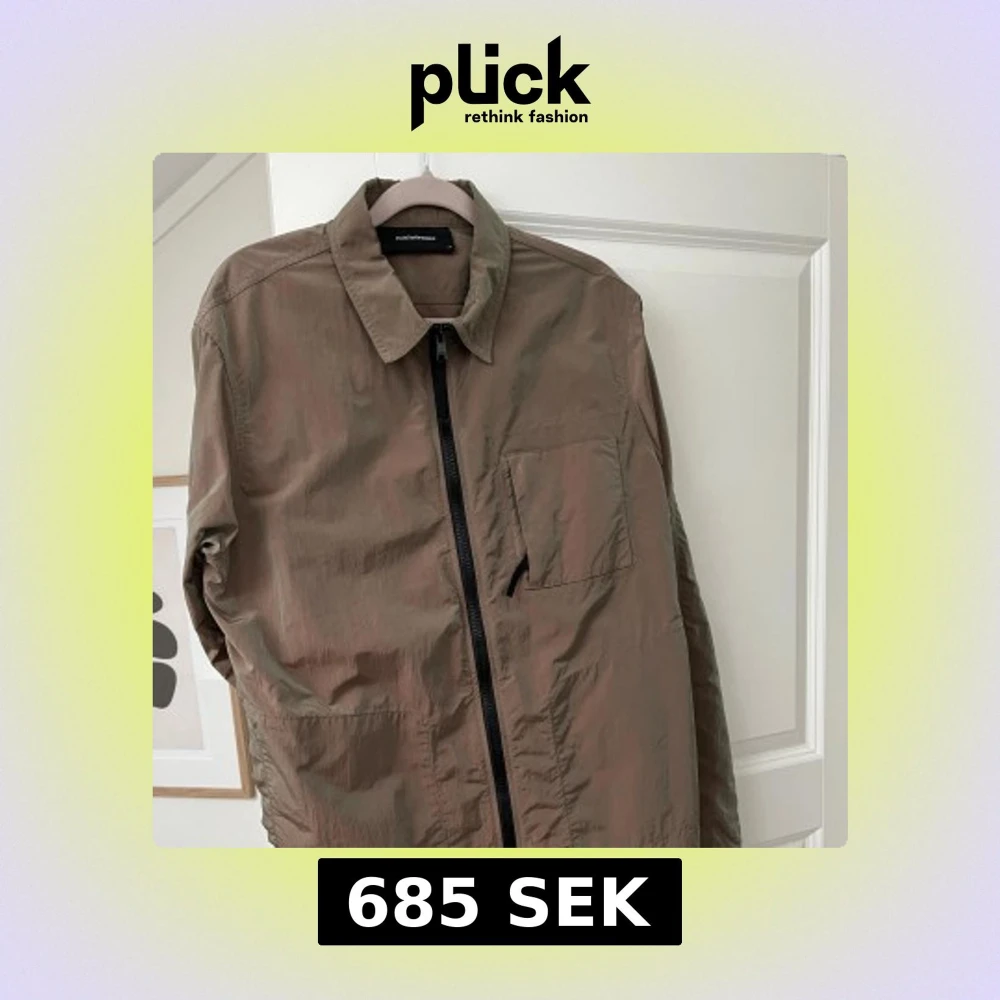 Snygg grön reflekterande overshirt från Peak Performance med rak passform och klassisk krage. Jackan har en bröstficka, hel dragkedja framtill och är tillverkad i lätt polyester. Perfekt för lager-på-lager och stilren look. Väldigt unik då den skiftar färg i olika ljus. Köpt för 2499. Använd 3-5 gånger och väl omhändertagen.