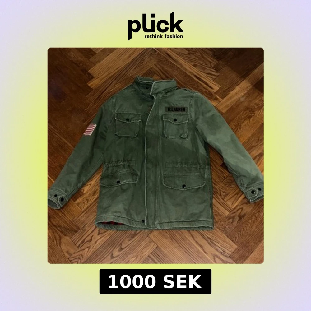 Snygg grön parkajacka från Polo Ralph Lauren med fyra stora fickor framtill, hög krage och patch med amerikansk flagga på ärmen. Jackan har röd- och svart-rutigt innerfoder och stängs med dragkedja och knappar. Perfekt för dig som gillar utility-vibe.
