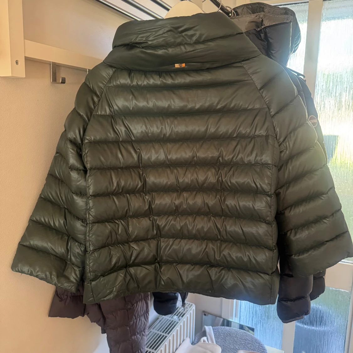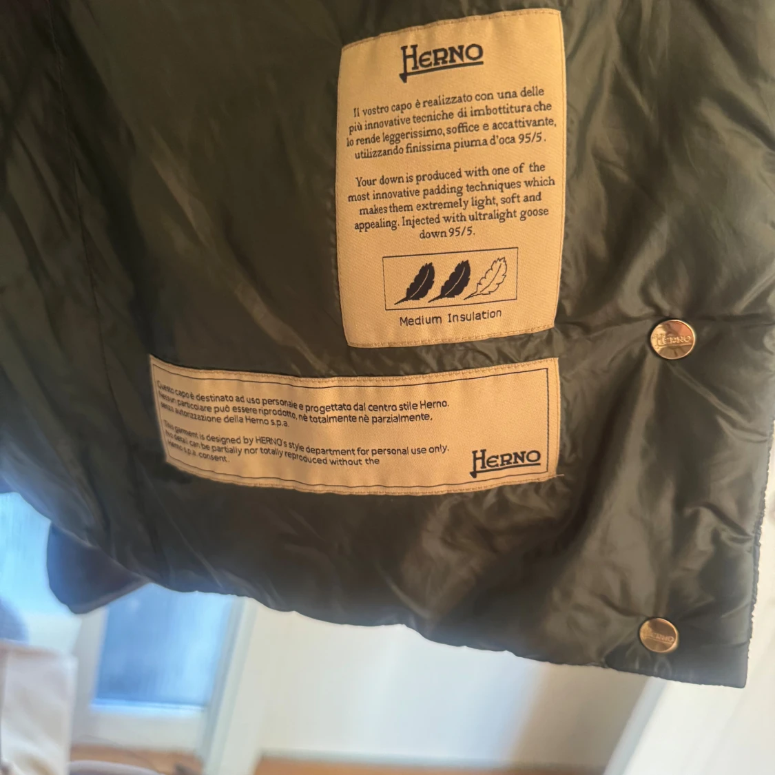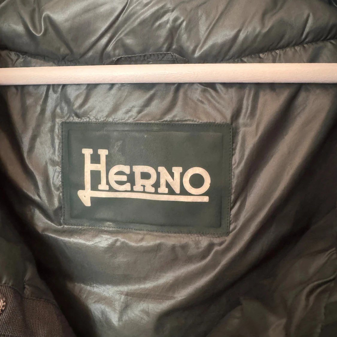 Säljer en mörkgrön pufferjacka från Herno i storlek 42 vilket motsvarar S/36. Jackan har en bred krage, horisontella quiltade sömmar och är tillverkad i 100% polyamid. Den har en loose passform och är perfekt för kalla dagar. Snygg och modern look med diskret logga på insidan. Köpt på vestiaire så äktighetsbevis medföljer