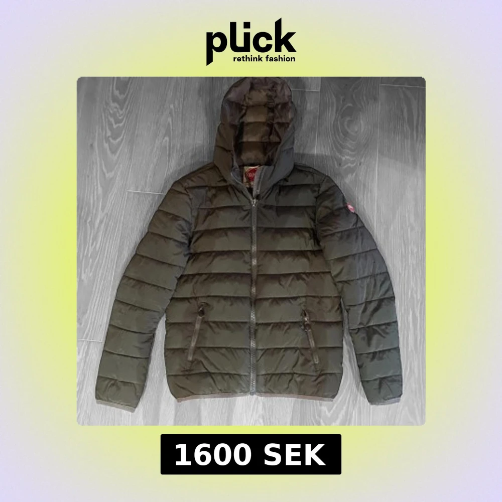 Grön pufferjacka med huva