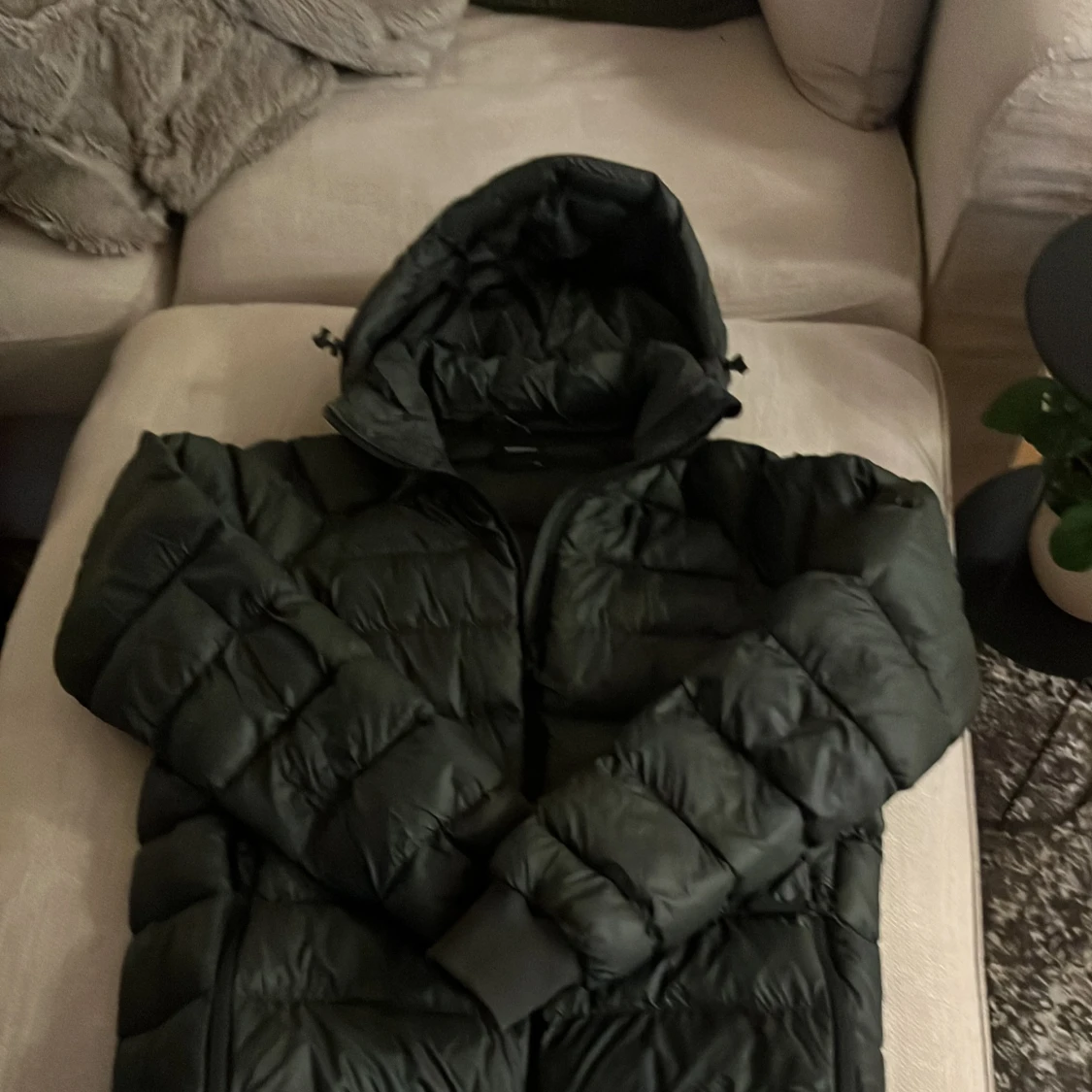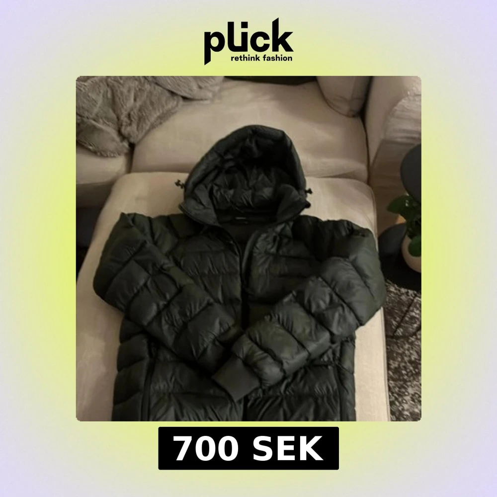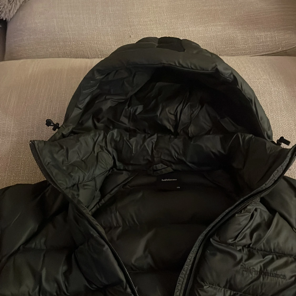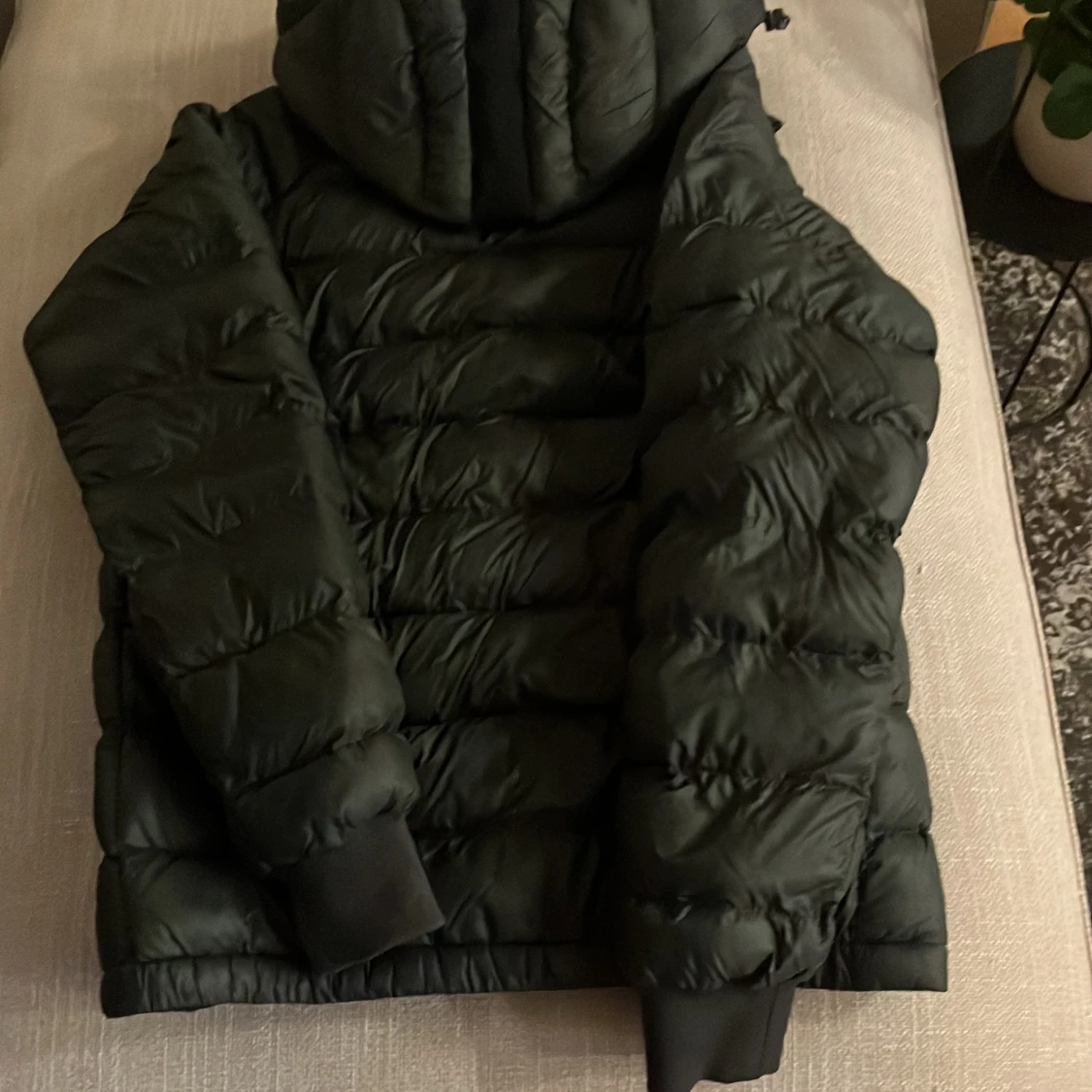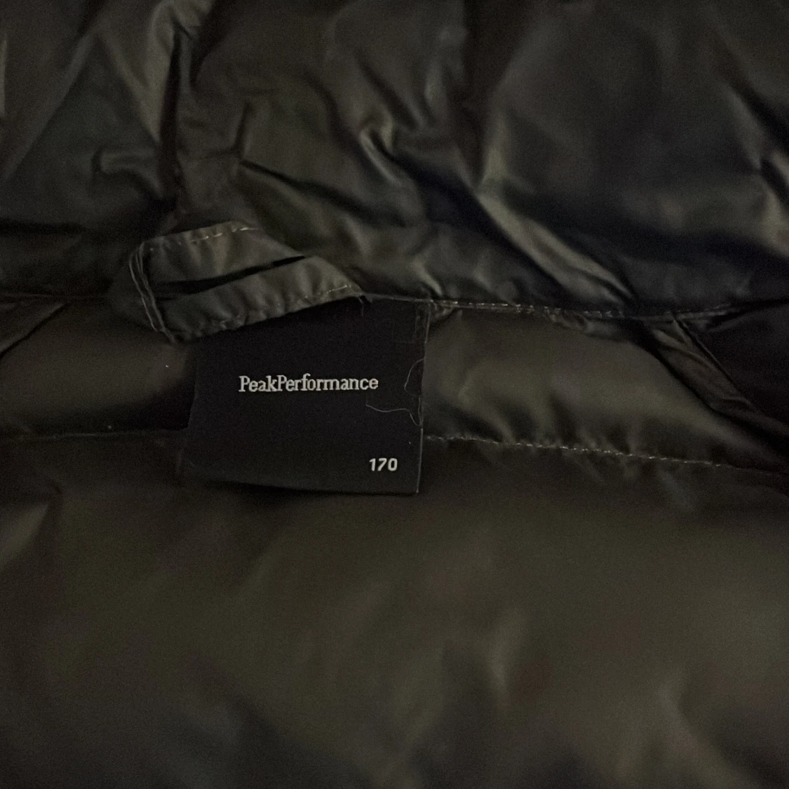 Säljer en görn pufferjacka från Peak Performance i storlek 170. Jackan har huva, dragkedja och ribbade muddar vid ärmsluten. Perfekt för kalla dagar och riktigt skön att ha på sig. Broderad logga på bröstet. Knappt använd, Ny skick. Hör av er om ni har några frågor. Pris kan diskuteras!