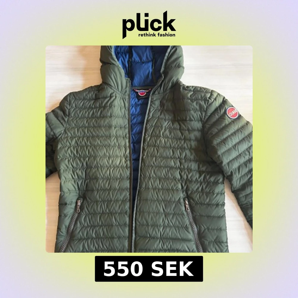 Snygg grön quiltad jacka från Colmar med blått foder. Jackan har en dragkedja framtill och en huva för extra skydd. Perfekt för kyligare dagar. Tyvärr är dragkedjan trasig men kan enkelt åtgärdas hos skräddare 🙌💯