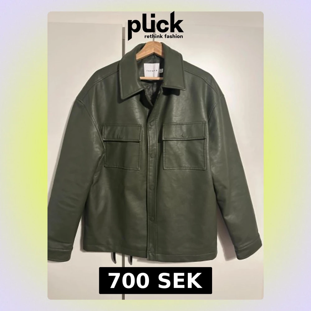 Snygg mörkgrön overshirt från Topman i skinnimitation med quiltat foder. Jackan har två stora bröstfickor med lock, tryckknappar framtill och klassisk krage. Perfekt för dig som gillar stilren och modern look.