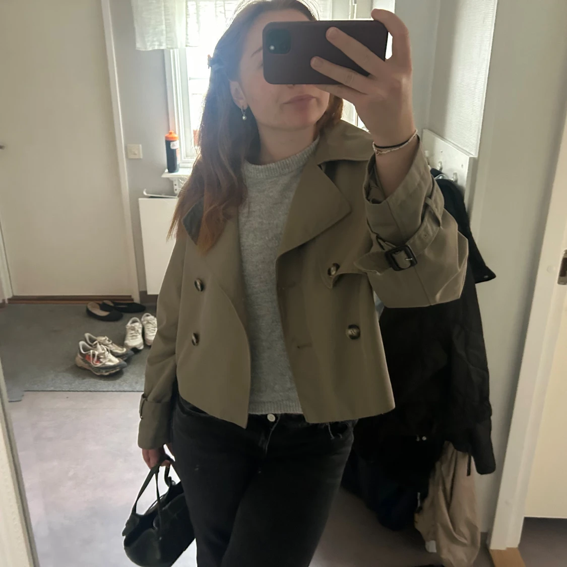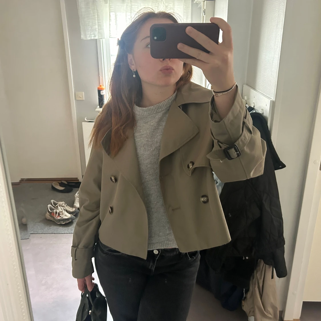 Säljer en grön trenchcoat från hm i bra skick