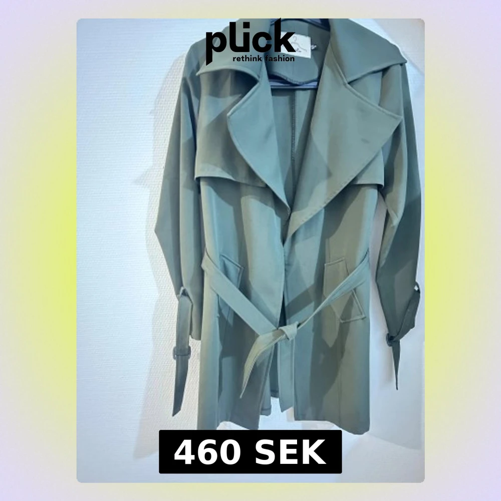 Snygg grön trenchcoat från Coco Miss med bred krage, knytbälte i midjan och detaljer vid ärmsluten. Jackan har en stilren look och är tillverkad i ett mjukt syntetmaterial. Perfekt för dig som gillar klassisk stil med modern touch.