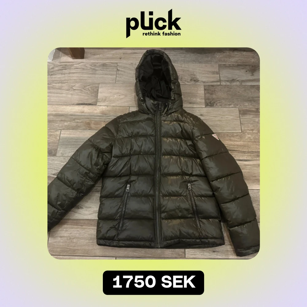 Grön glansig jacka från Guess, köpt för 2.750kr i vintras i usa men modellen säljs ej längre men priset kan disktueras. Knappt andvänd så är i nyskick skulle jag säga. Lite lik den gröna massimo dutti jackan enligt mig. Storlek M men funkar för allt från xs-m skulle jag säga. Skriv för fler bilder💞💞