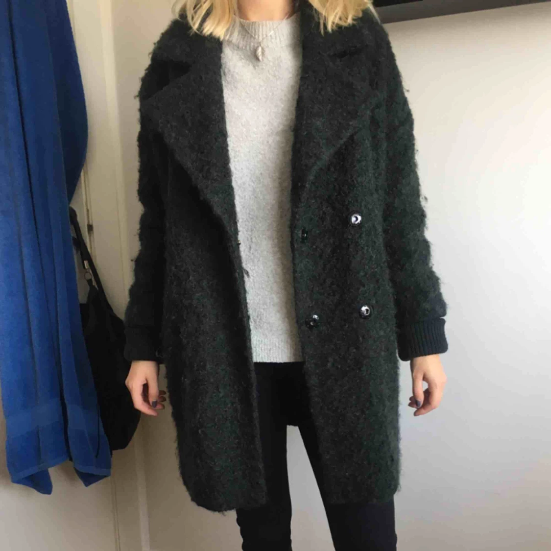 En mossgrön supermysig kappa köpt på Topshop för över tusenlappen. Är i storlek 34 men skulle säga att den absolut passar 36 också! Använd ett fåtal gånger så i bra skick! Frakt ingår såklart i priset 💌